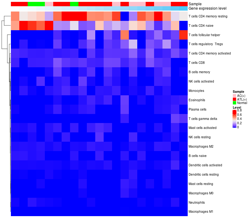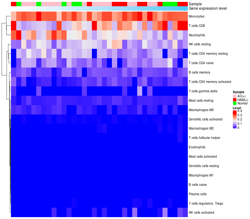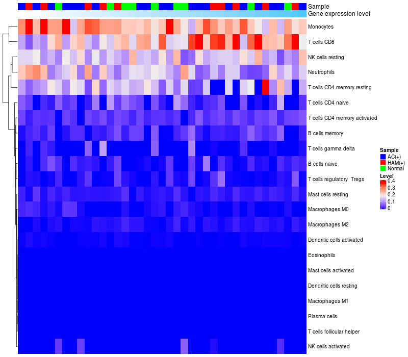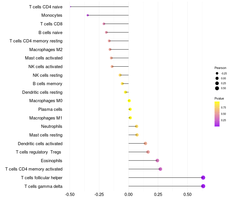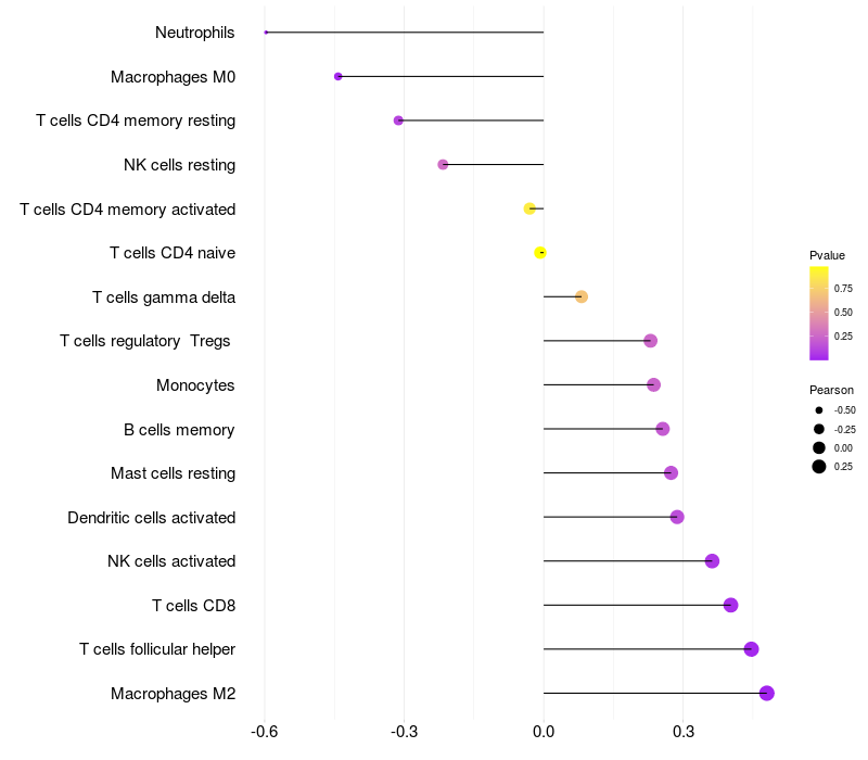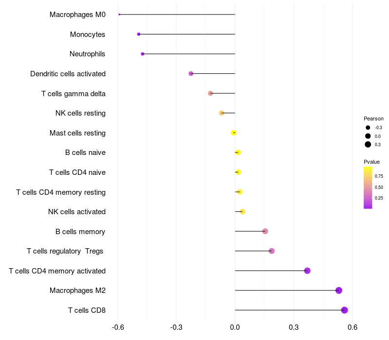 Relationship between gene expression and immune infiltrating cell level