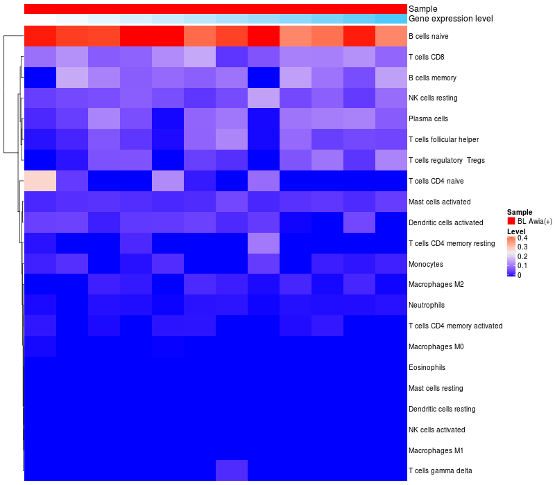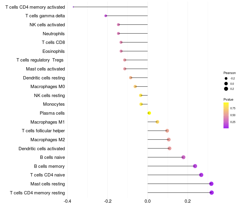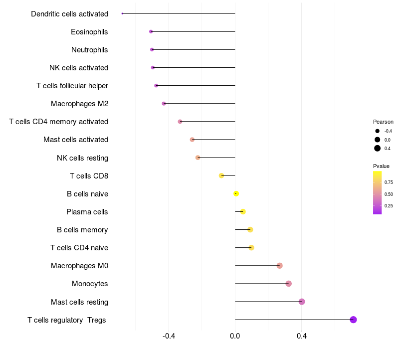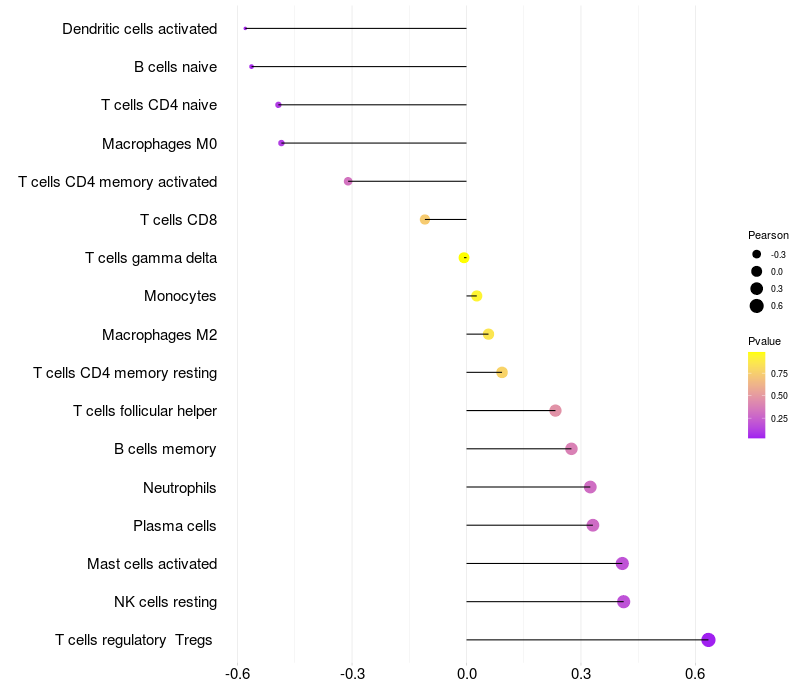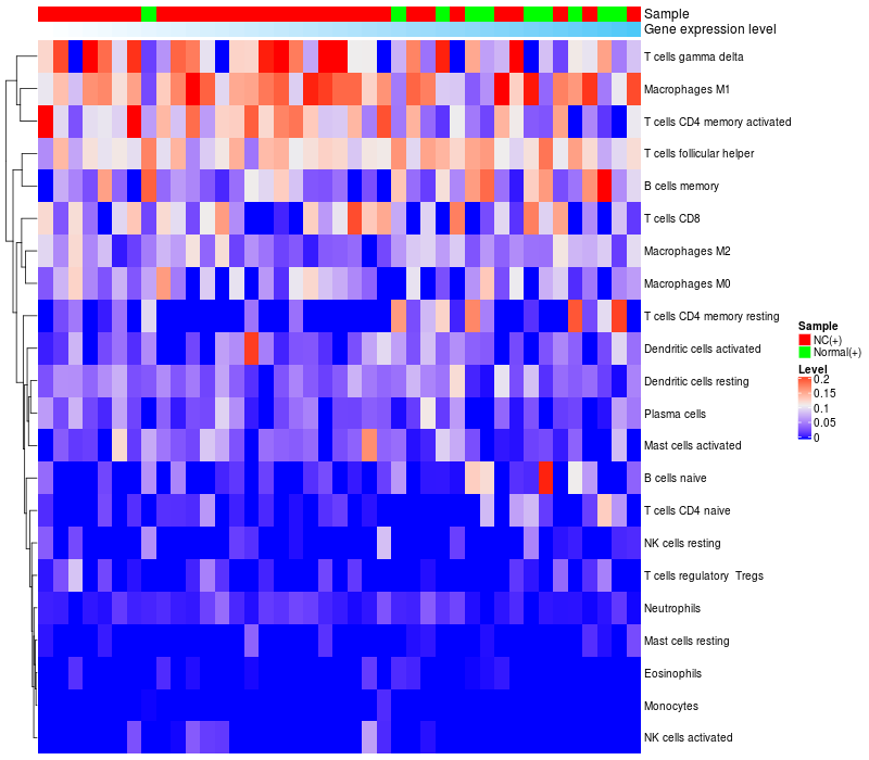 Relationship between gene expression and immune infiltrating cell level