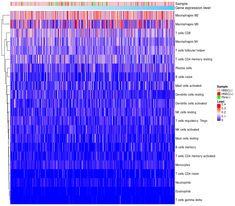 Relationship between gene expression and immune infiltrating cell level