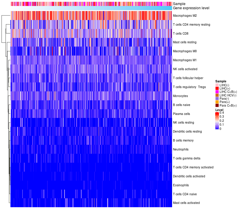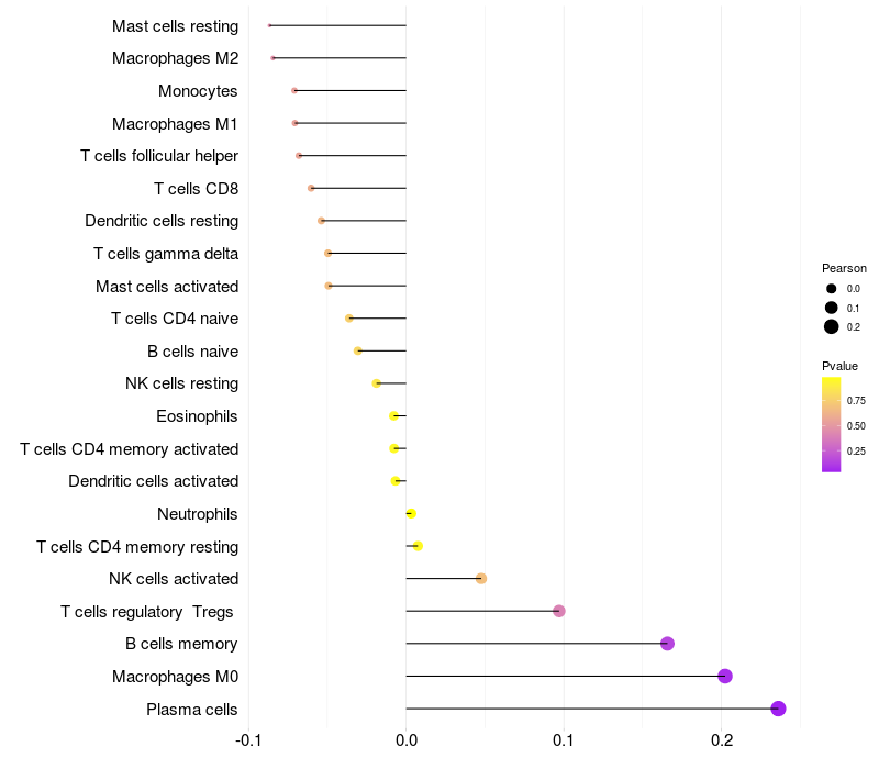 Relationship between gene expression and immune infiltrating cell level