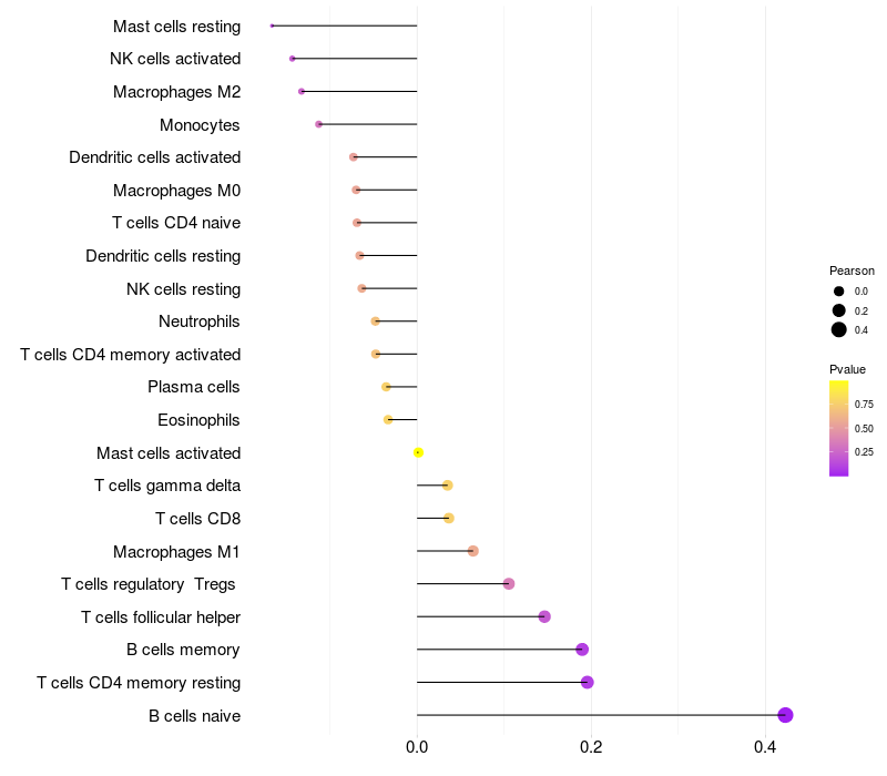 Lollipop of MUSK expression and immune infiltrating cell level correlation result in HBV+ samples