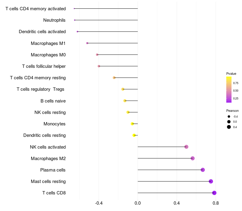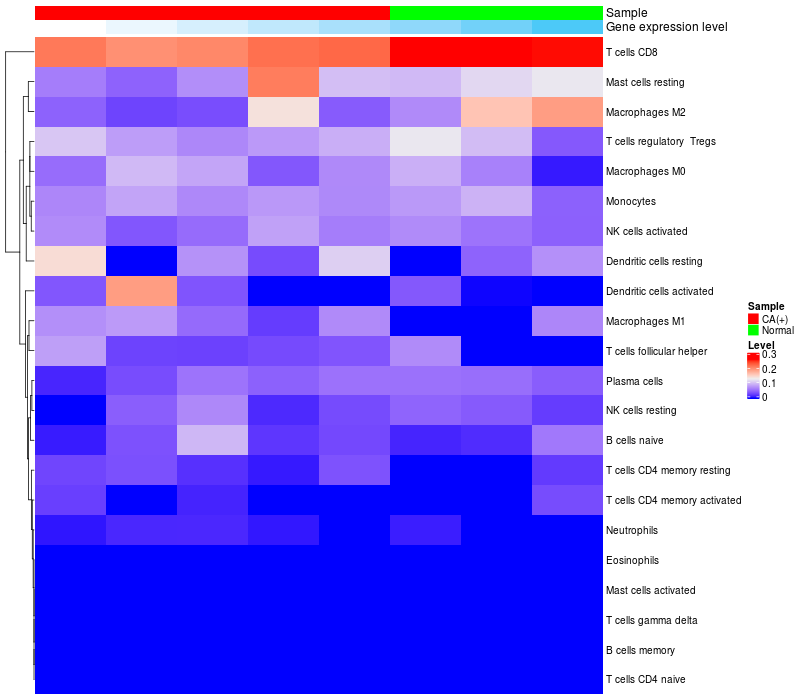 Relationship between gene expression and immune infiltrating cell level