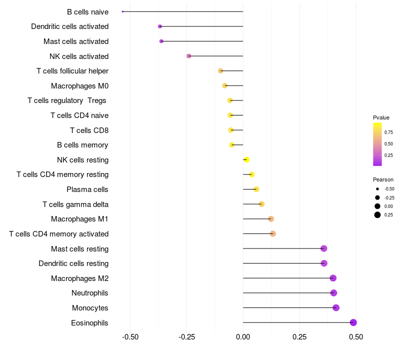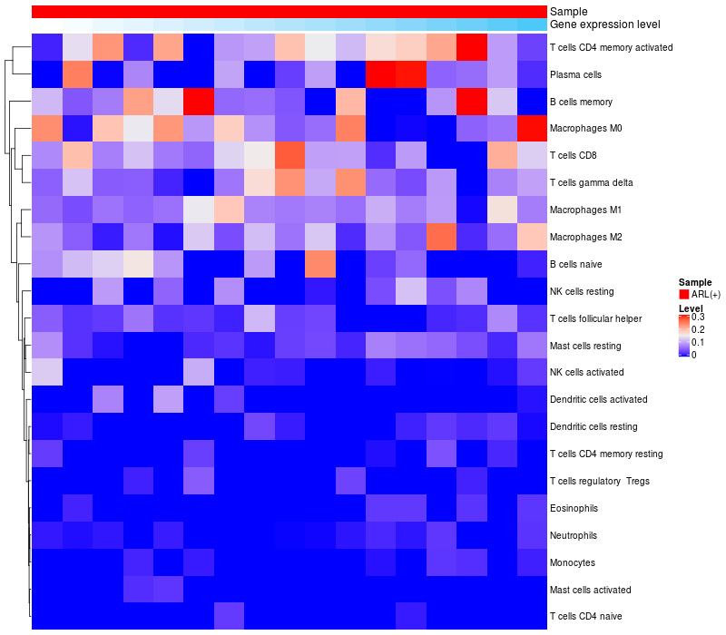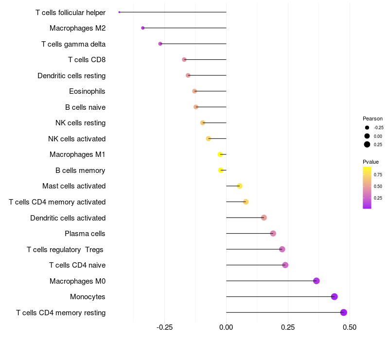 Relationship between gene expression and immune infiltrating cell level