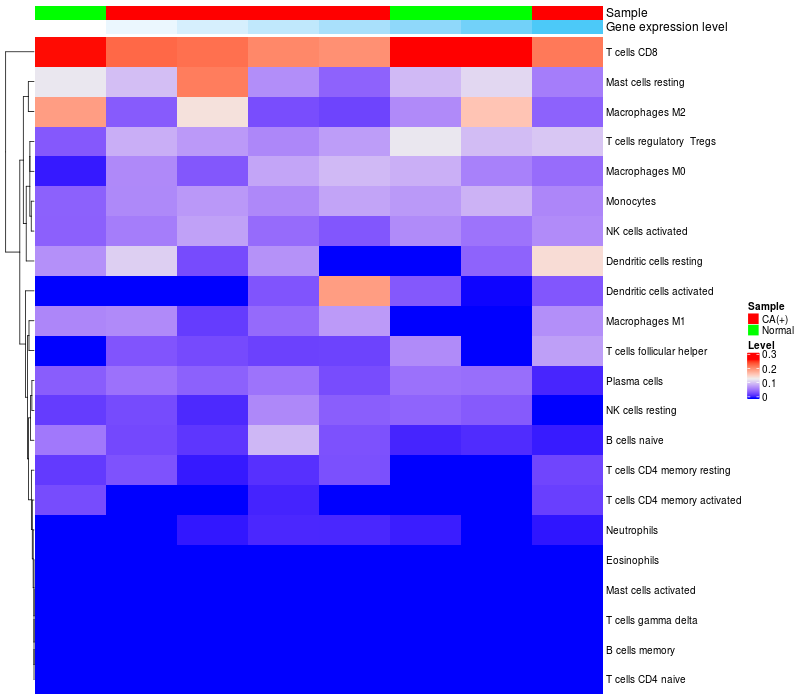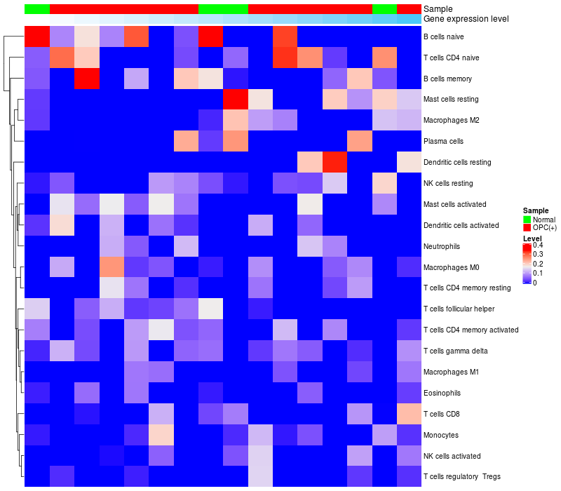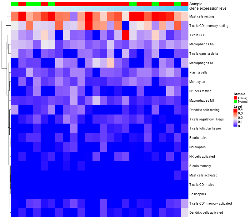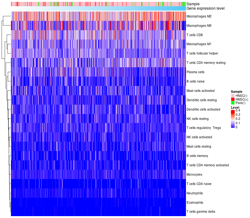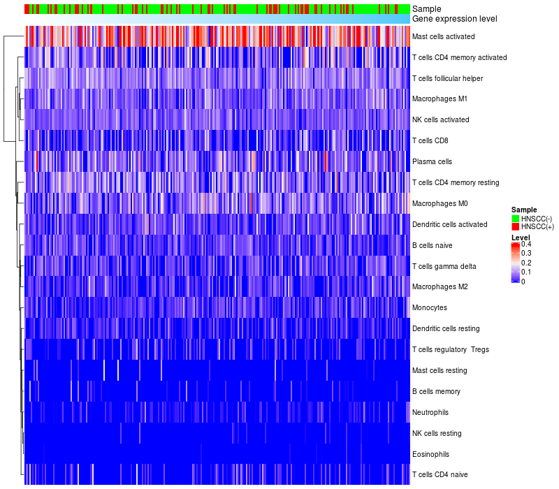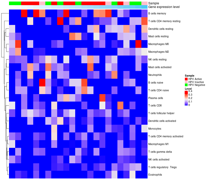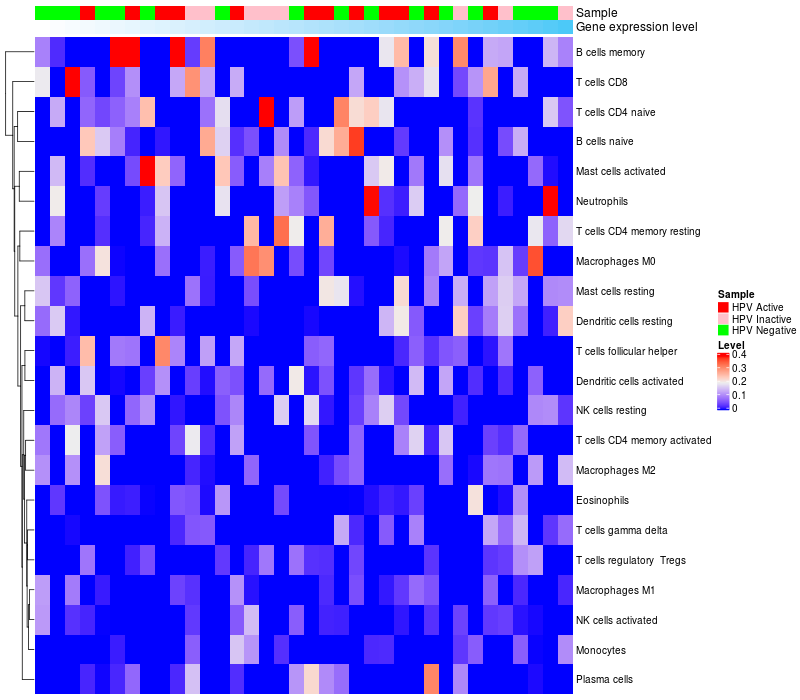 Lollipop of MYF6 expression and immune infiltrating cell level correlation result in HPV+ samples
