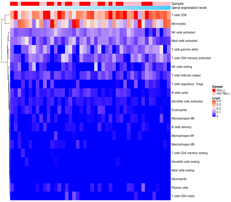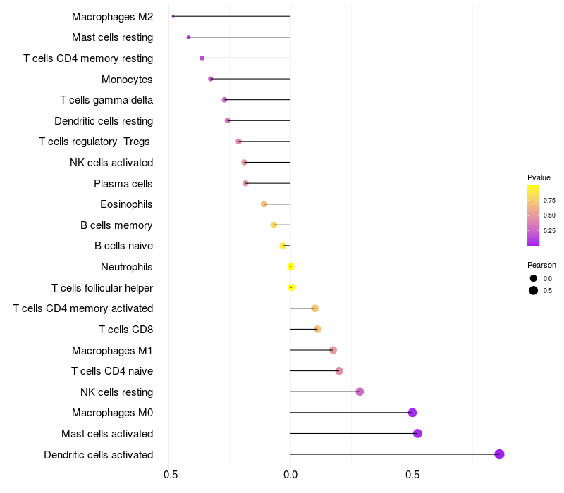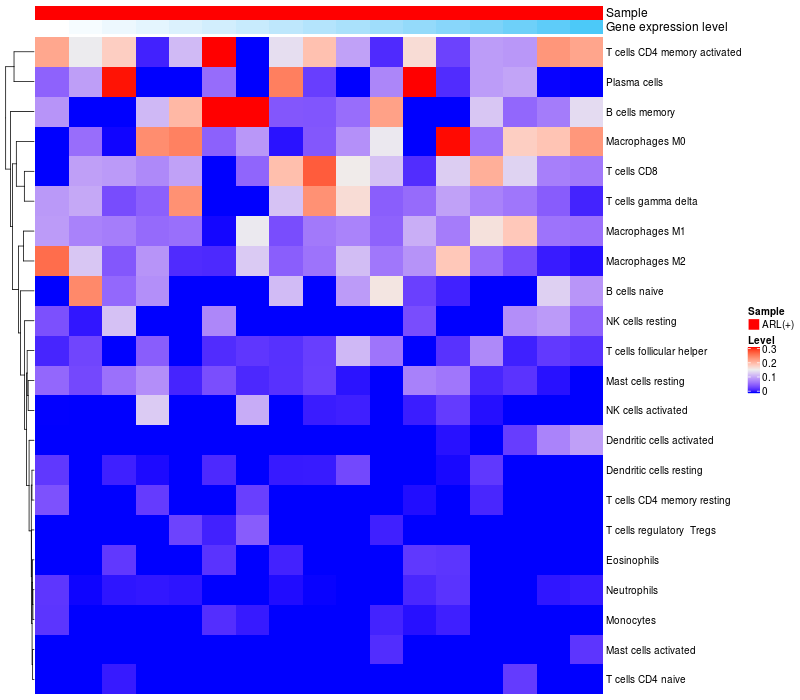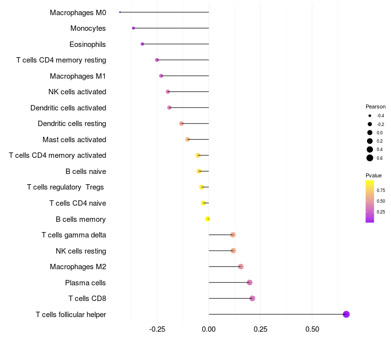 Relationship between gene expression and immune infiltrating cell level