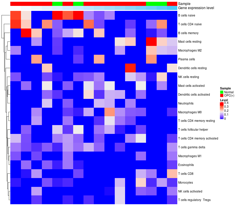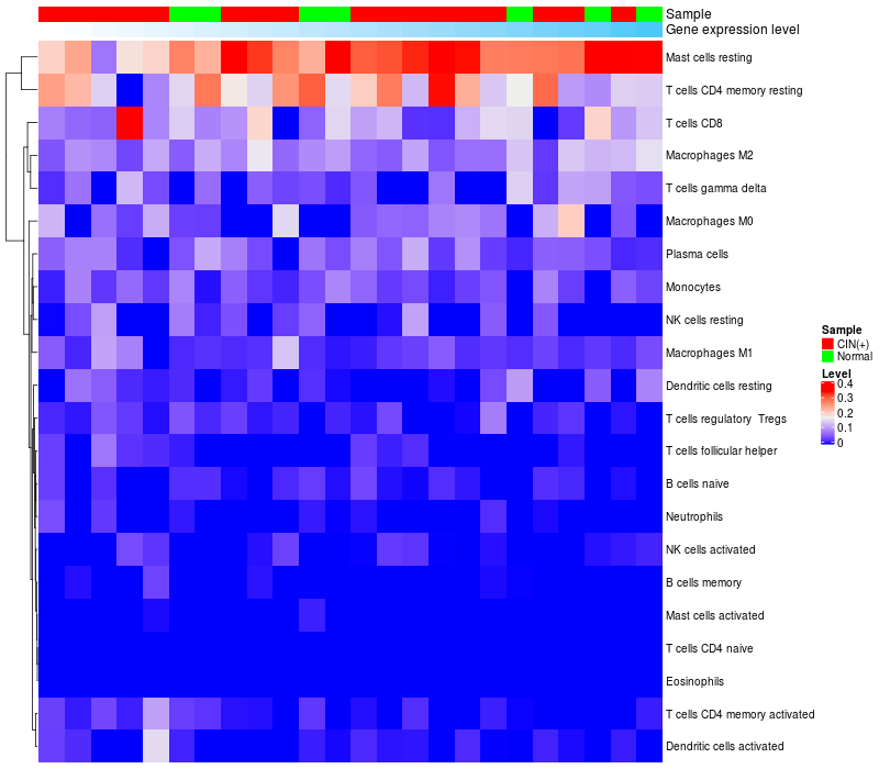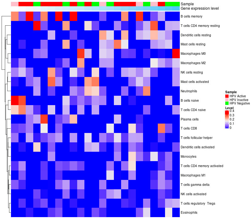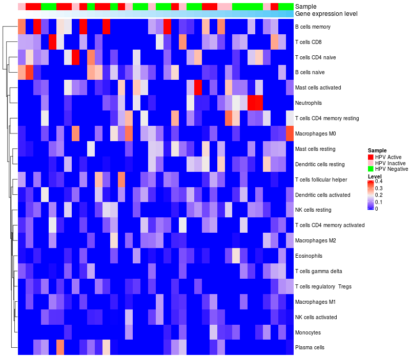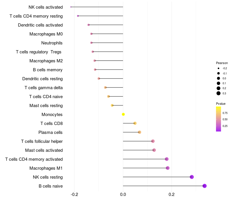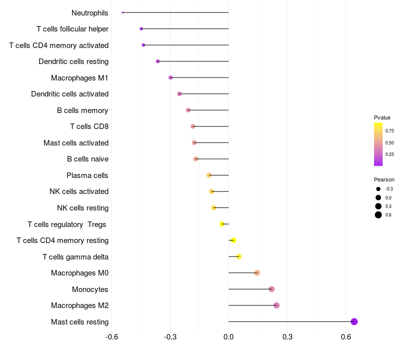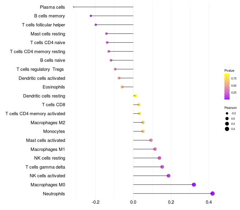 Lollipop of MYL4 expression and immune infiltrating cell level correlation result in HPV+ samples