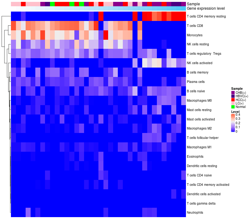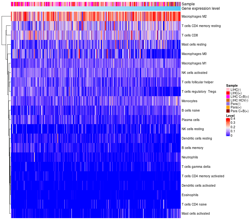 Liver hepatocellular carcinoma HCV (HBV+)(86), Liver hepatocellular carcinoma HCV (HBV-)(19), Liver hepatocellular carcinoma (HBV+)(209), Liver hepatocellular carcinoma (HBV+)(60), Paracancerous HCV (HBV+)(4), Paracancerous (HBV-)(28), Paracancerous (HBV+)(18) |
