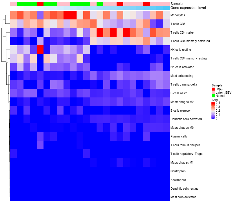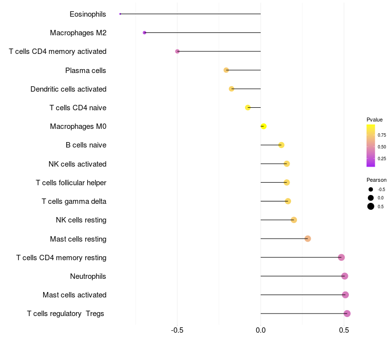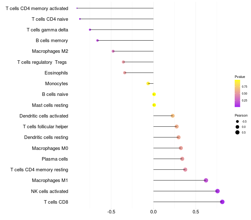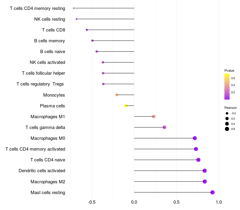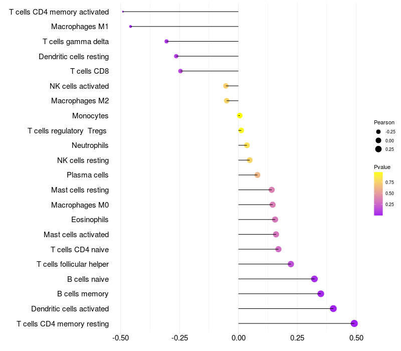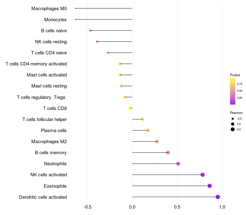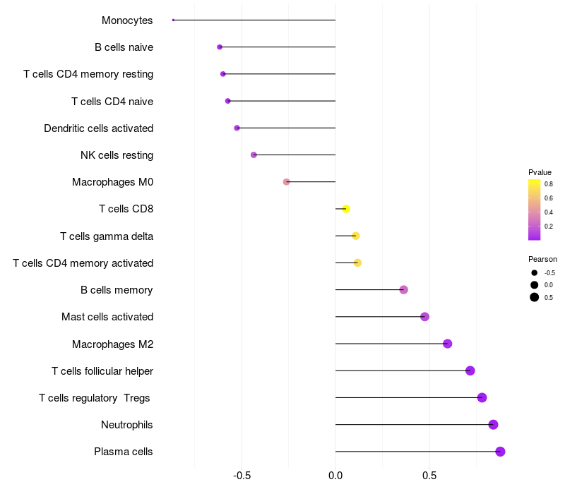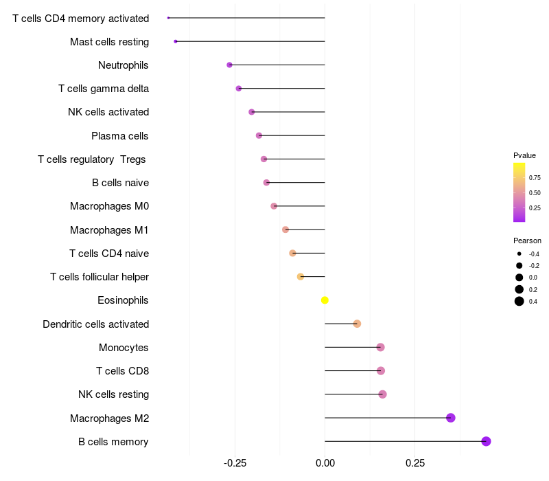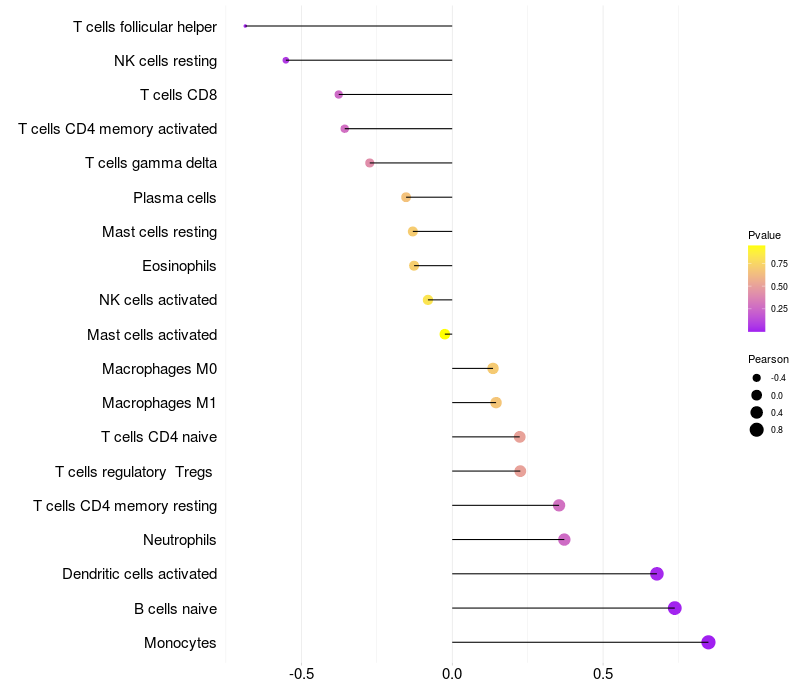 Lollipop of MYO1E expression and immune infiltrating cell level correlation result in EBV+ samples