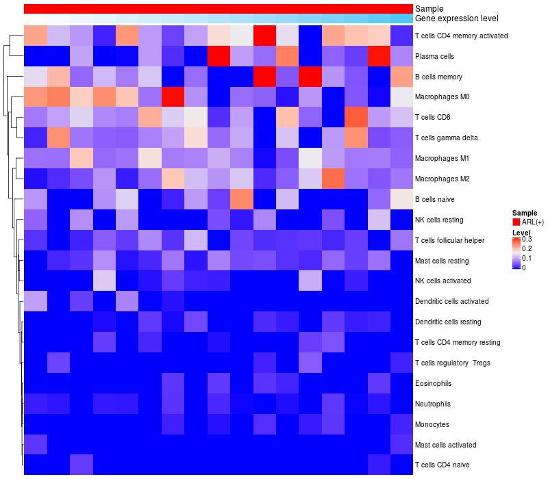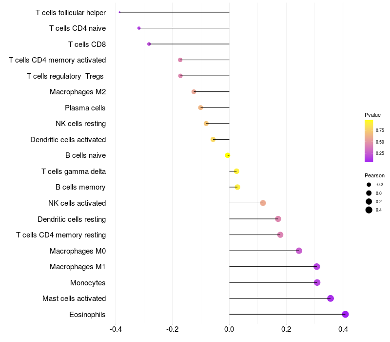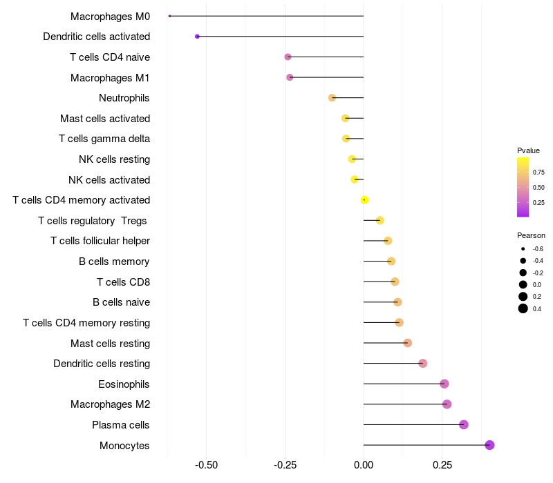 Relationship between gene expression and immune infiltrating cell level