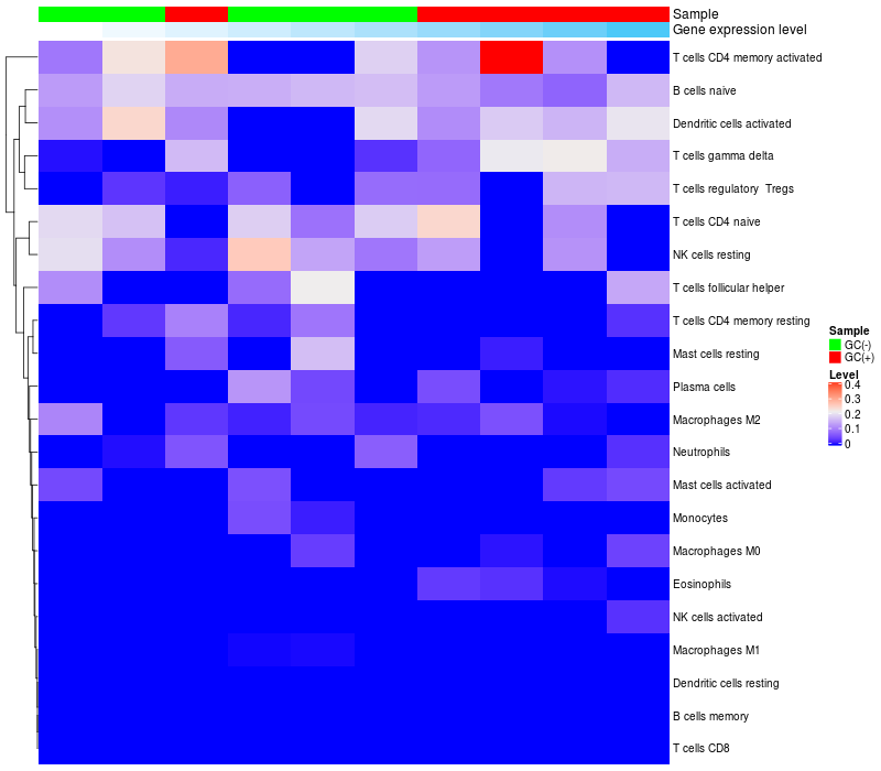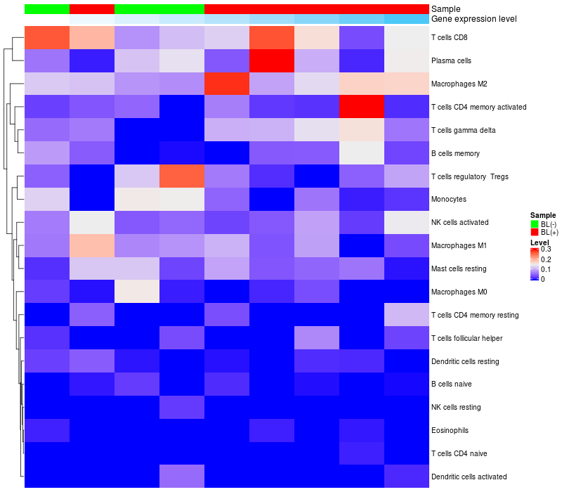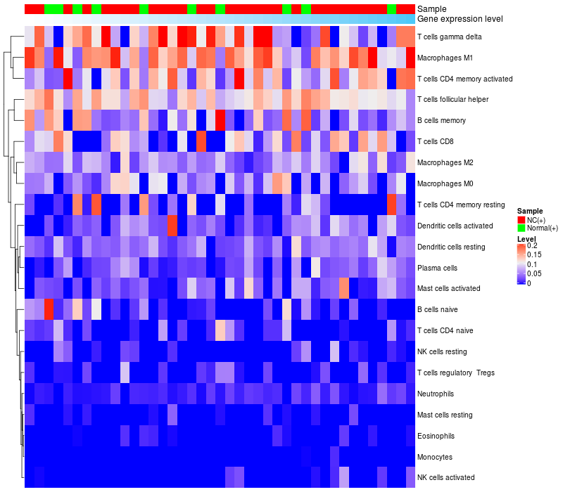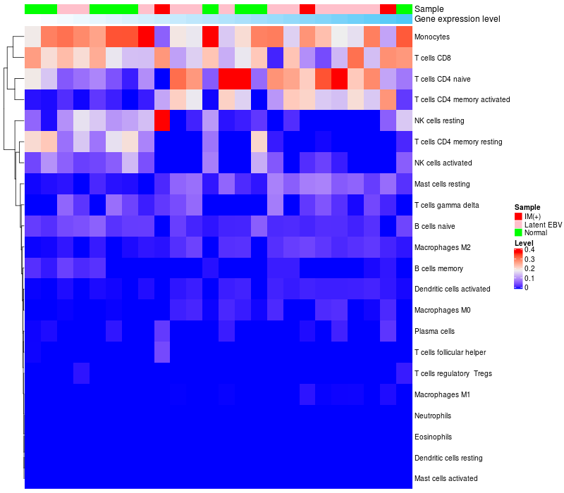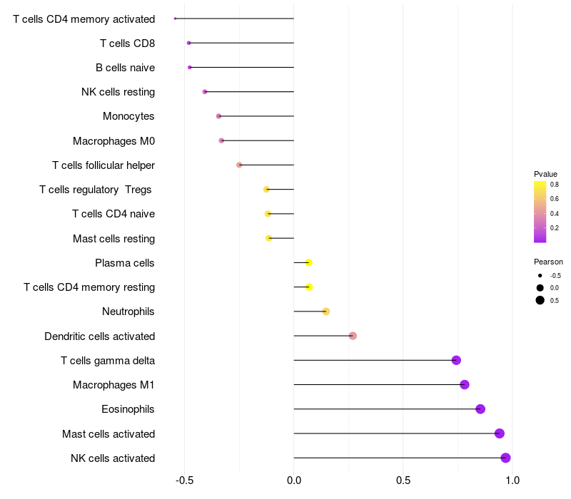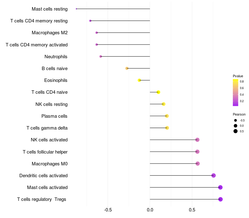 Lollipop of MYO6 expression and immune infiltrating cell level correlation result in EBV+ samples