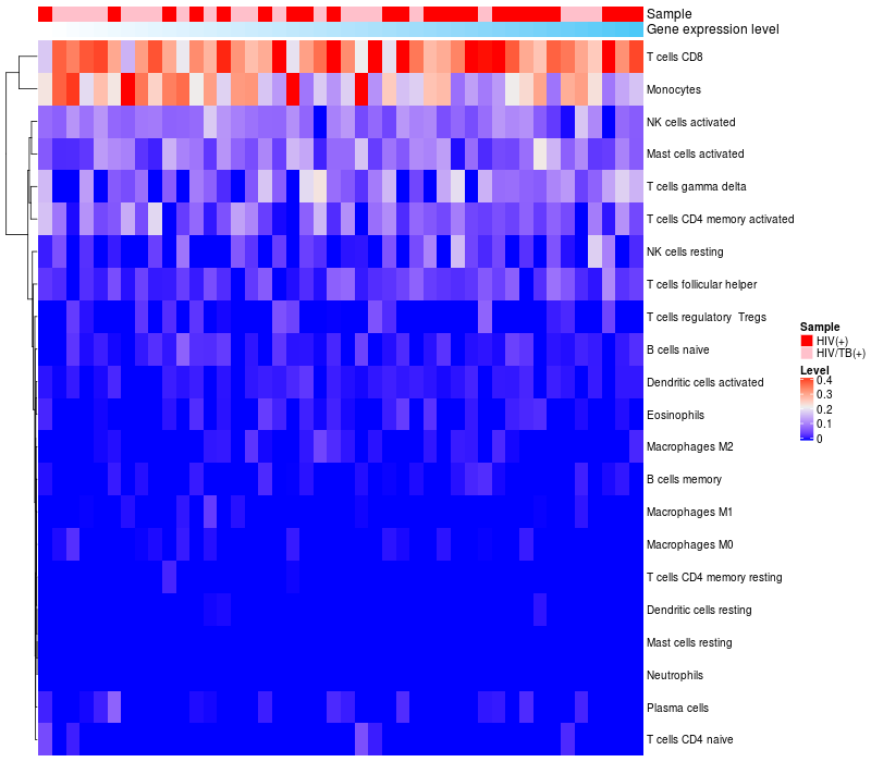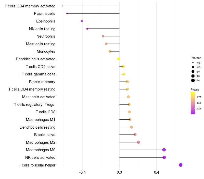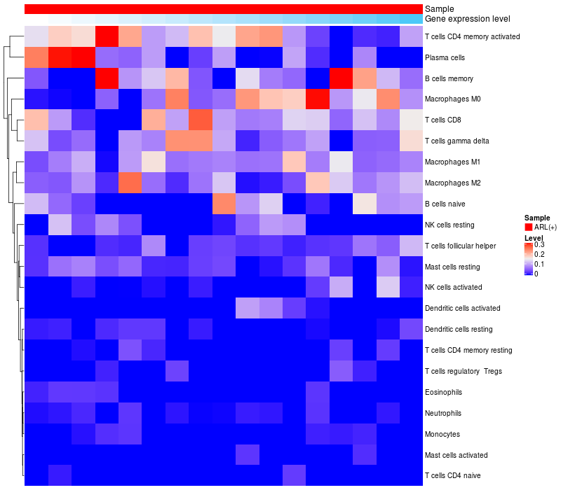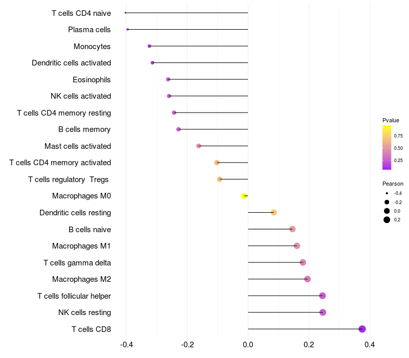 Relationship between gene expression and immune infiltrating cell level