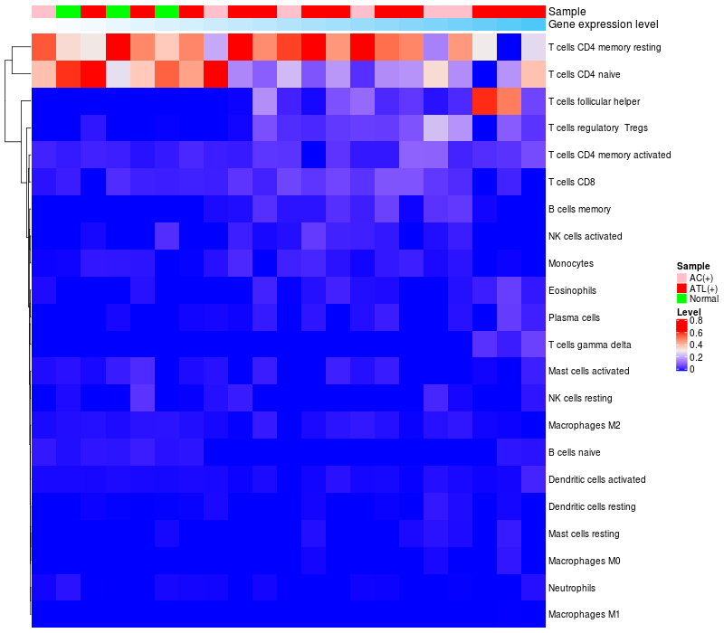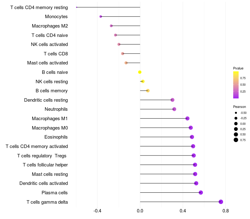 Relationship between gene expression and immune infiltrating cell level