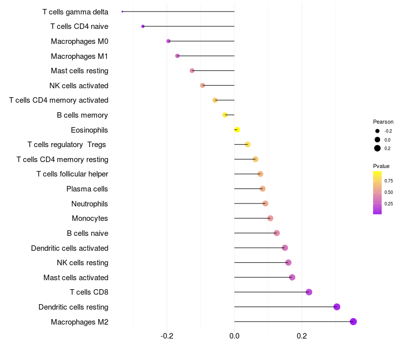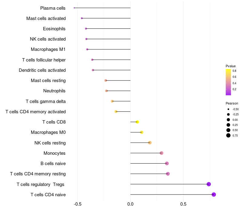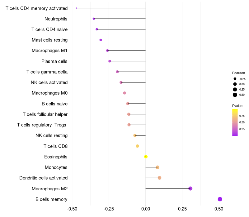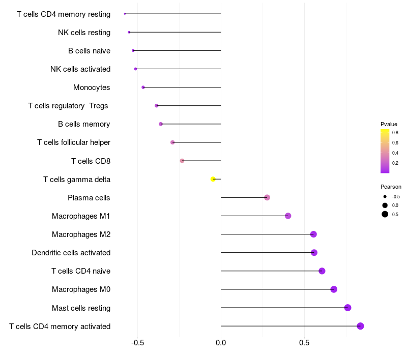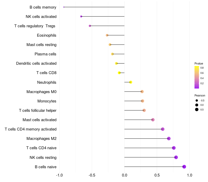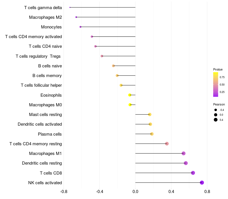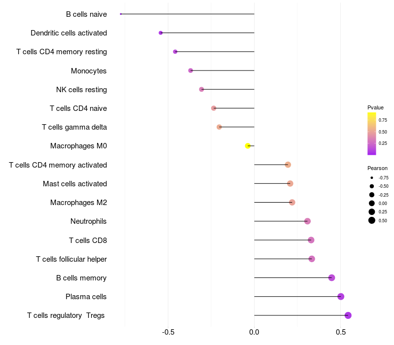 Lollipop of N6AMT1 expression and immune infiltrating cell level correlation result in EBV+ samples