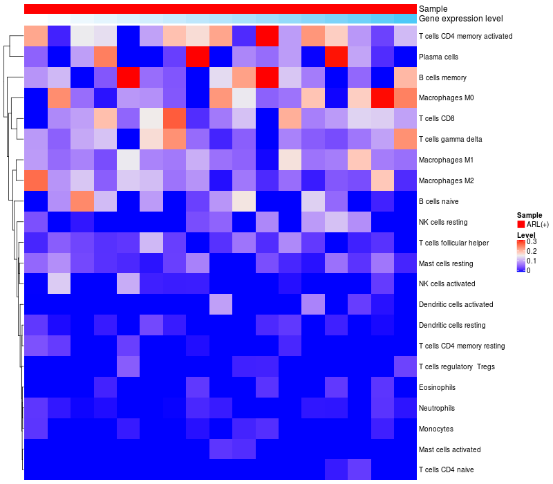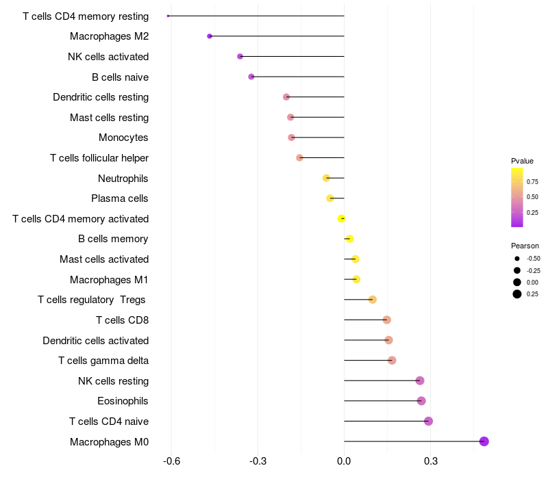 Relationship between gene expression and immune infiltrating cell level