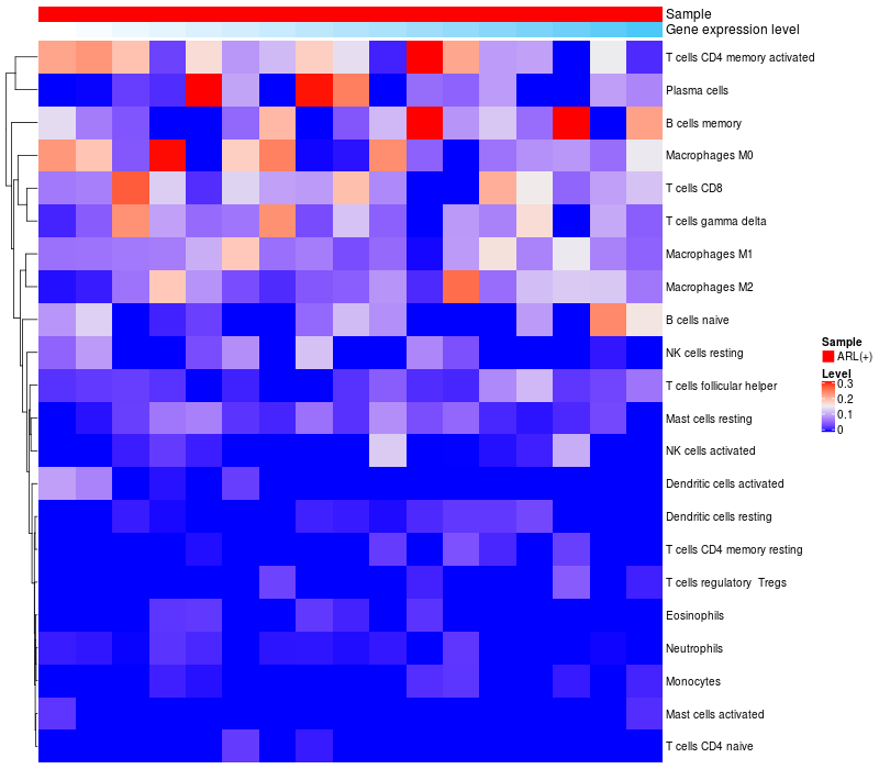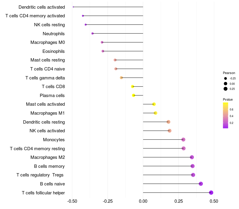 Relationship between gene expression and immune infiltrating cell level