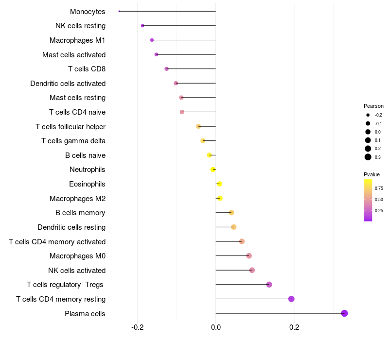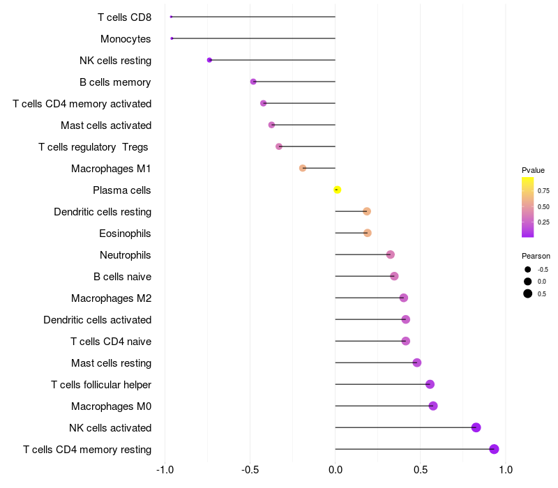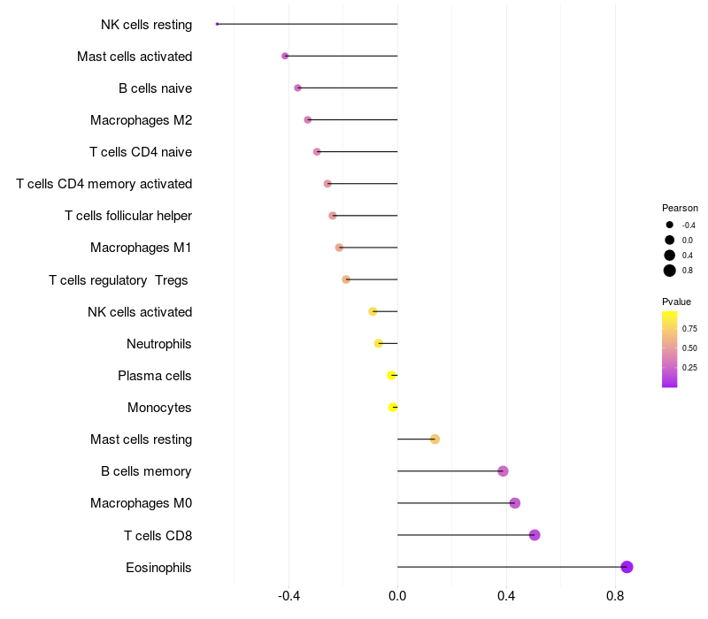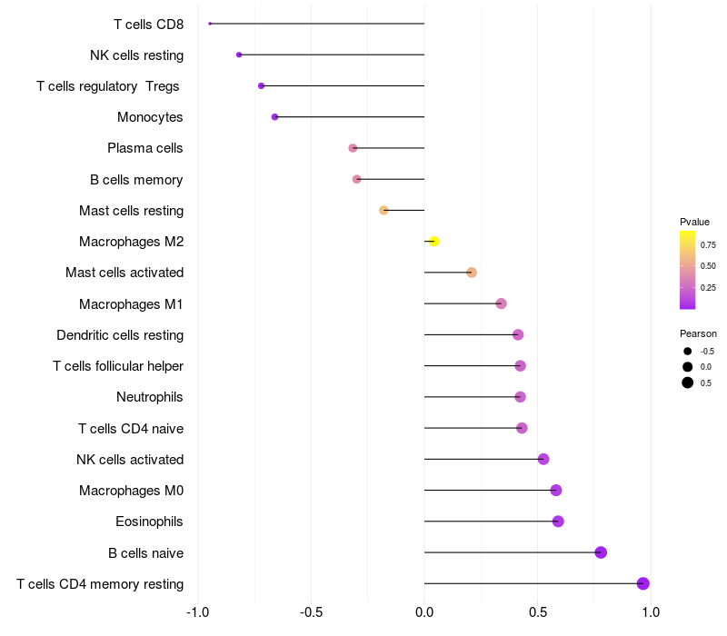 Lollipop of NAV1 expression and immune infiltrating cell level correlation result in HBV+ Liver cirrhosis samples