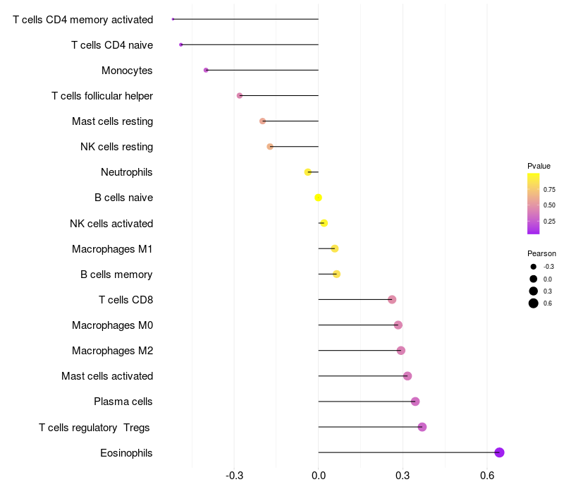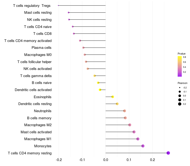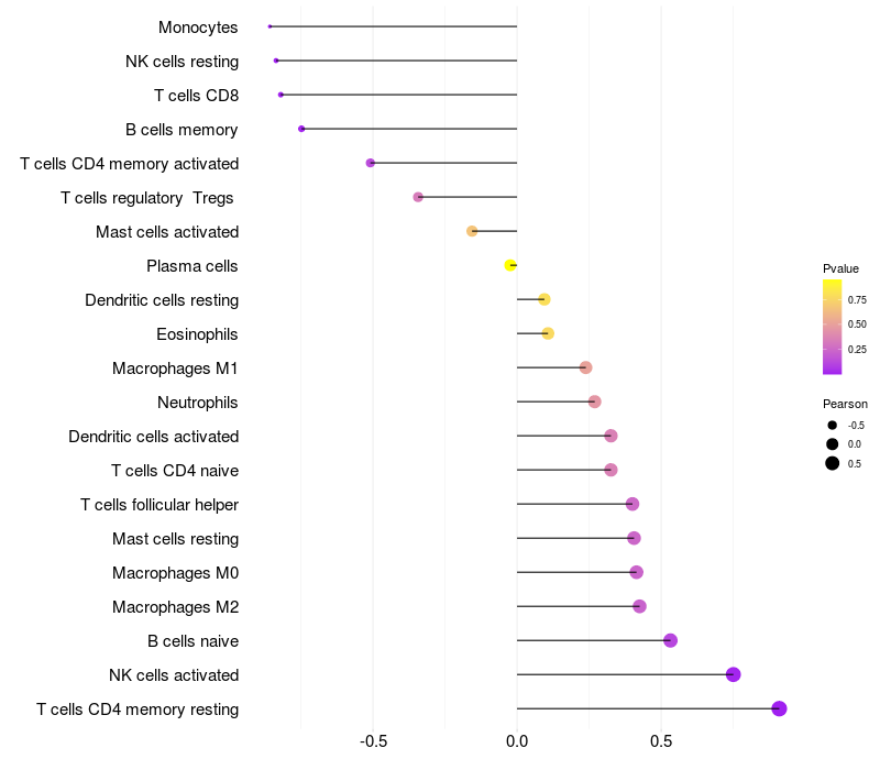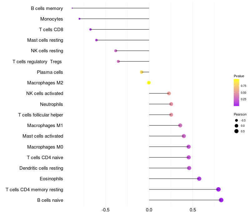 Lollipop of NAV2 expression and immune infiltrating cell level correlation result in HBV+ Liver cirrhosis samples
