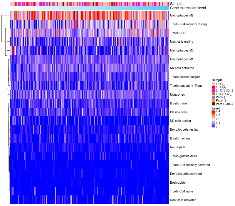 Relationship between gene expression and immune infiltrating cell level