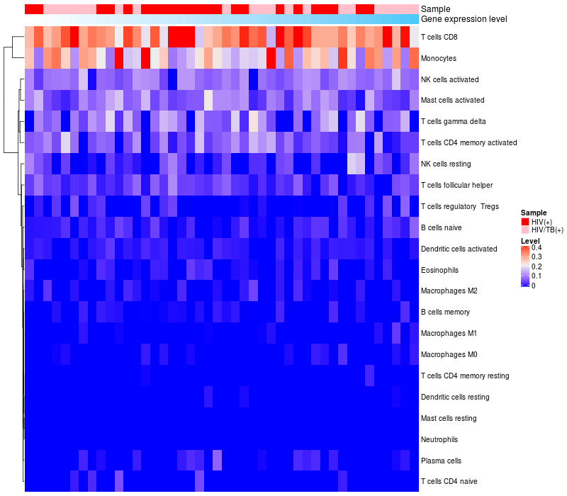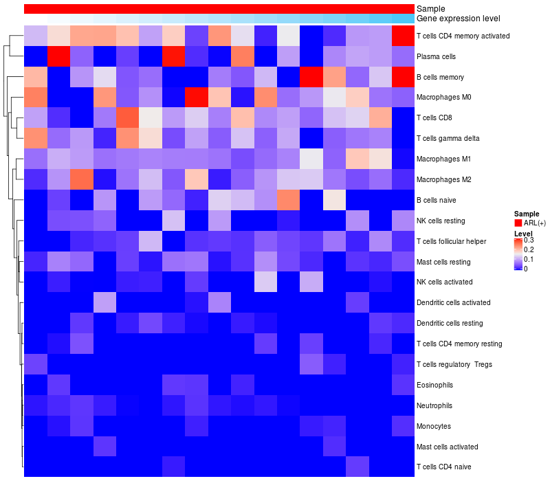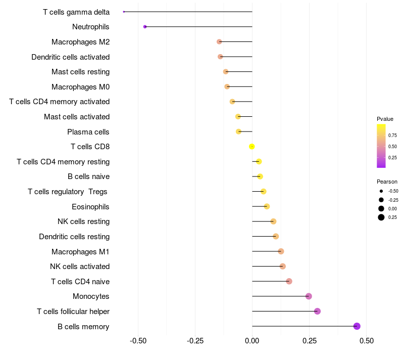 Relationship between gene expression and immune infiltrating cell level