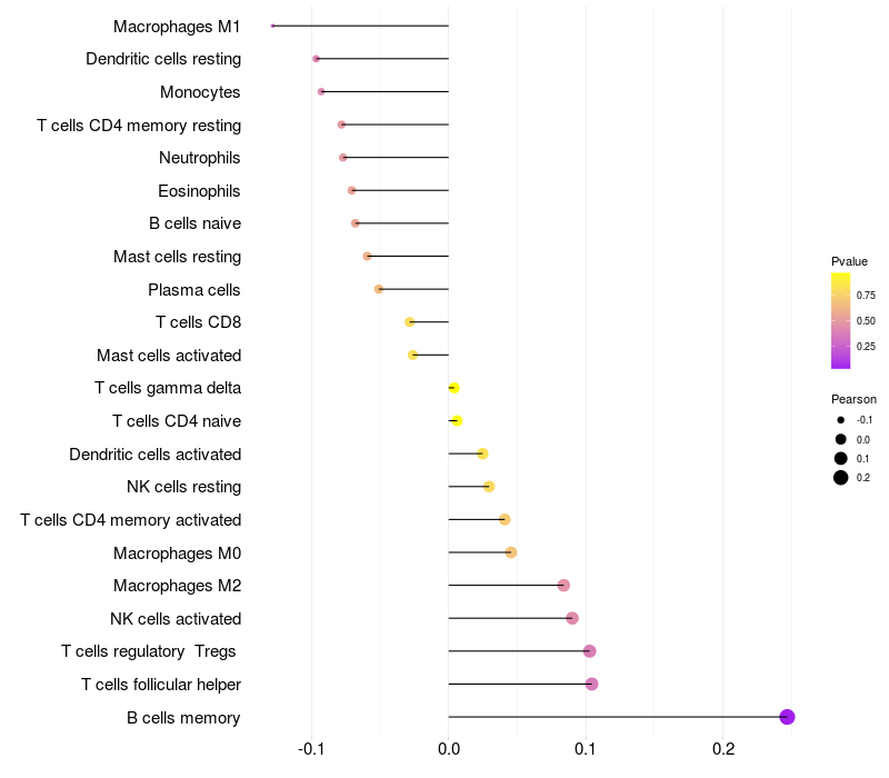 Lollipop of NCALD expression and immune infiltrating cell level correlation result in HBV+ Hepatocellular carcinoma samples