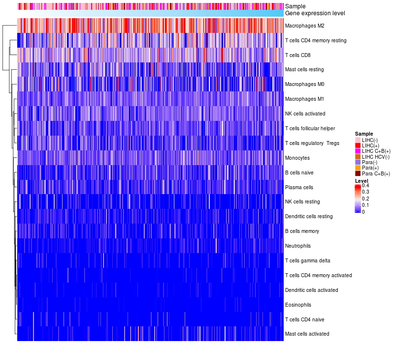 Relationship between gene expression and immune infiltrating cell level