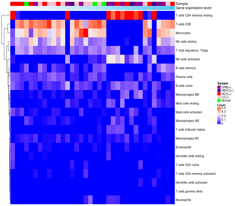 Relationship between gene expression and immune infiltrating cell level