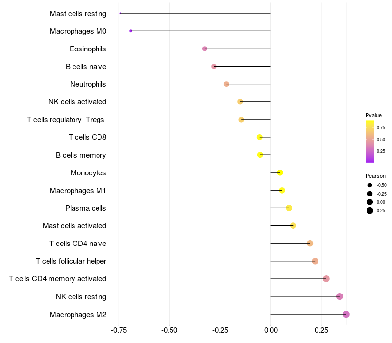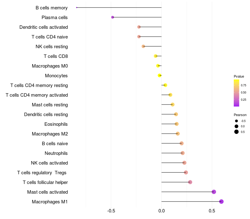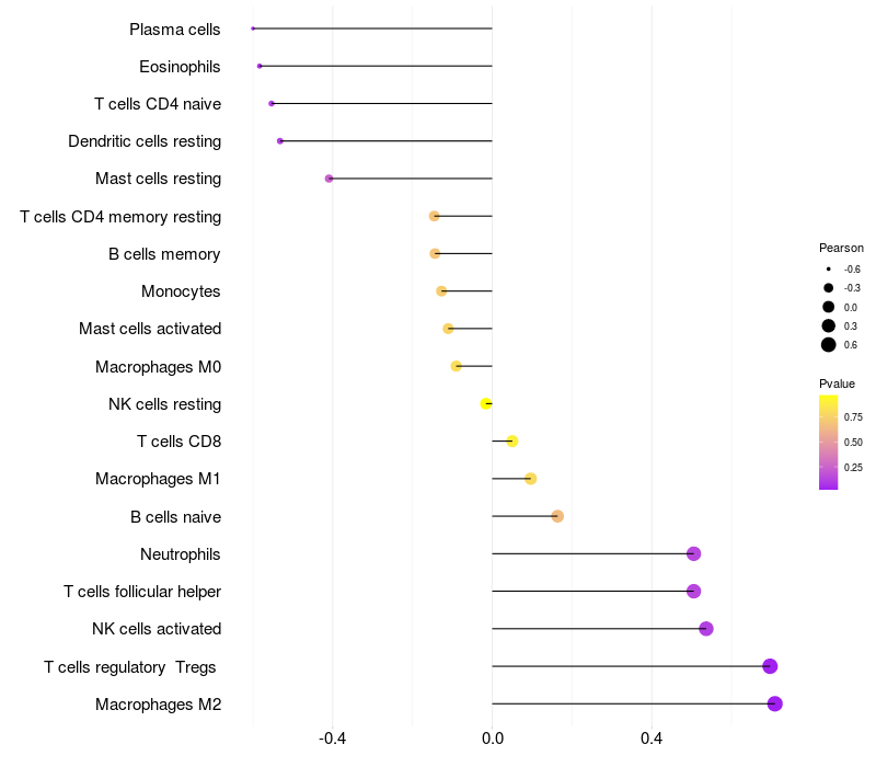 Lollipop of NCOR2 expression and immune infiltrating cell level correlation result in HBV+ Liver cirrhosis samples