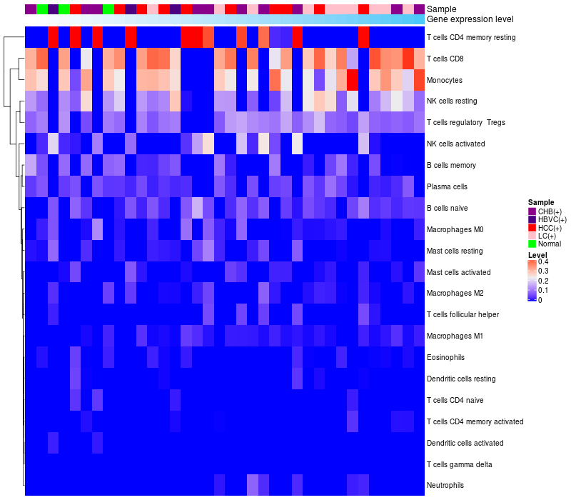 Relationship between gene expression and immune infiltrating cell level