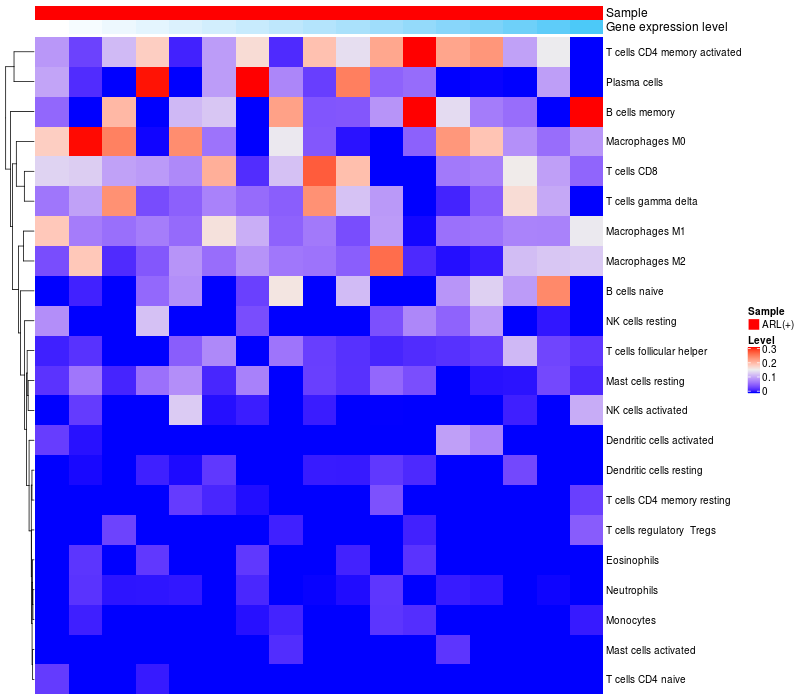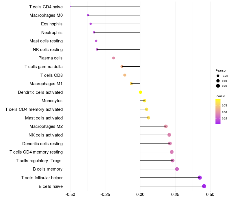 Relationship between gene expression and immune infiltrating cell level