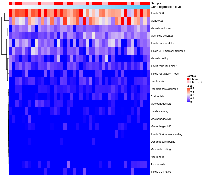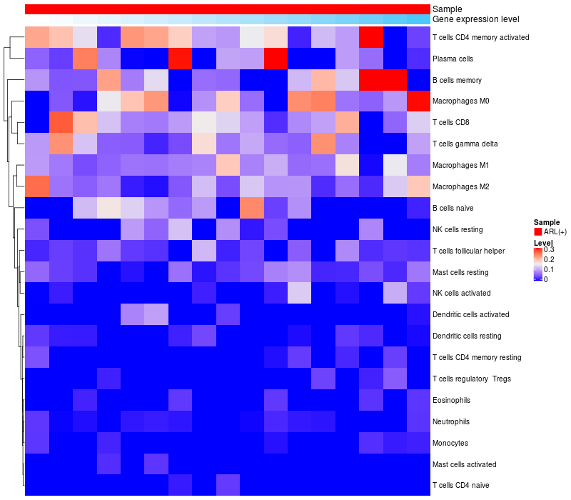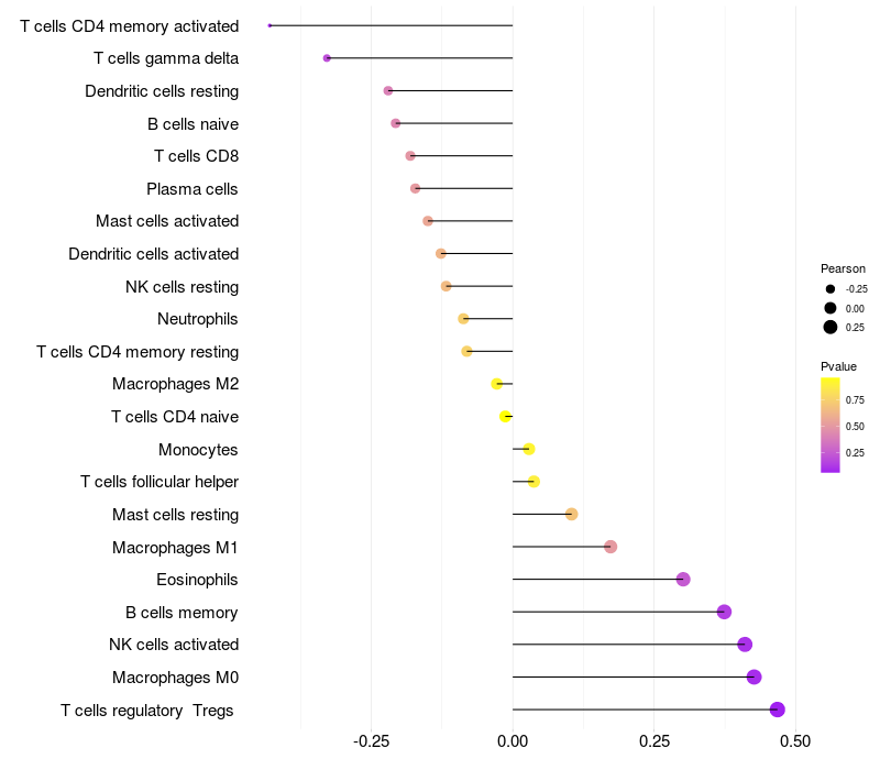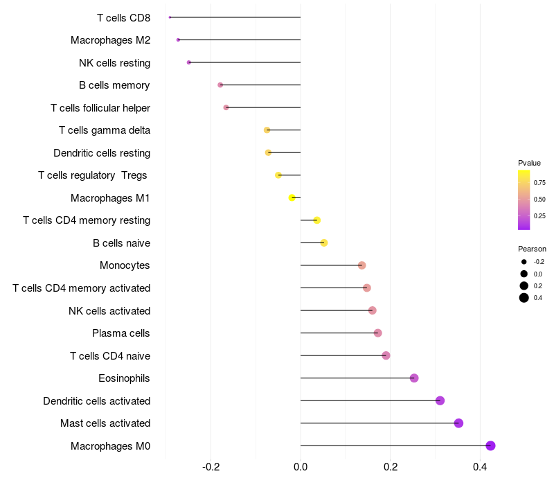 Relationship between gene expression and immune infiltrating cell level