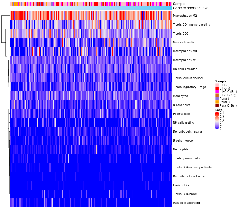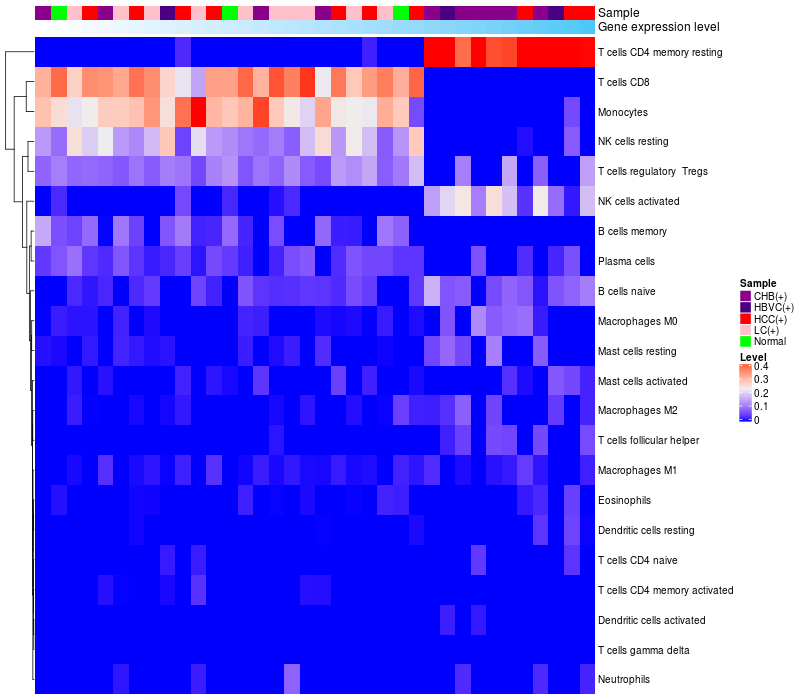Relationship between gene expression and immune infiltrating cell level