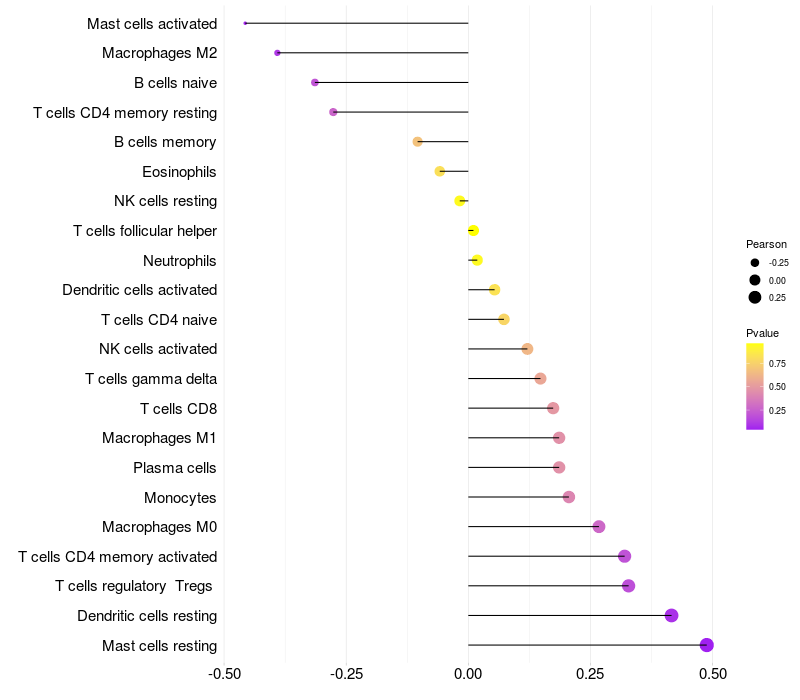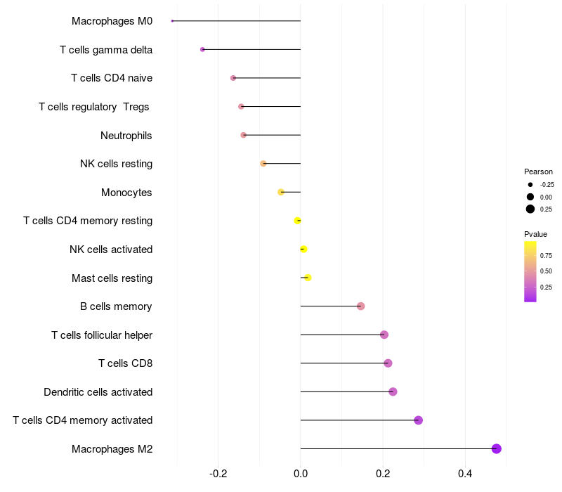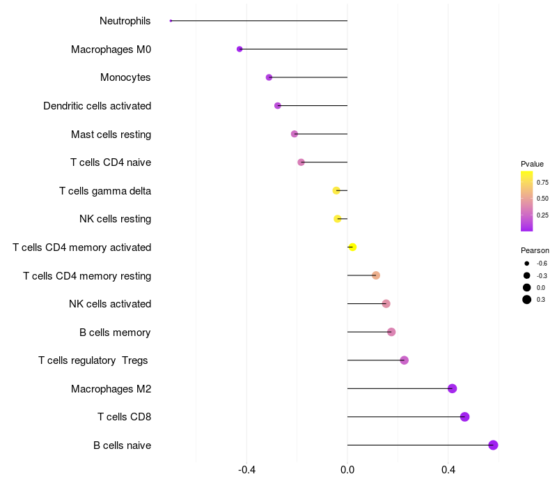 Lollipop of NDUFA10 expression and immune infiltrating cell level correlation result in HTLV1+ samples