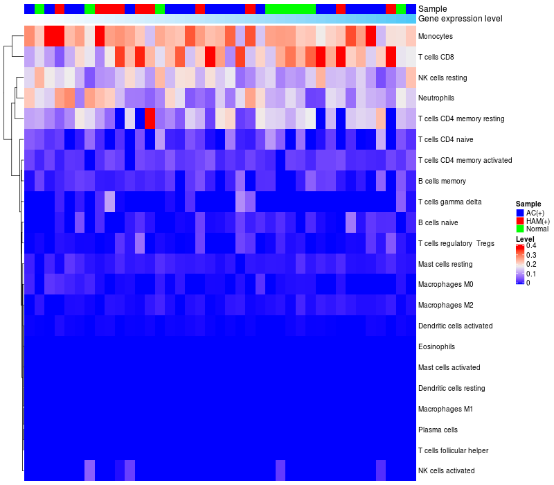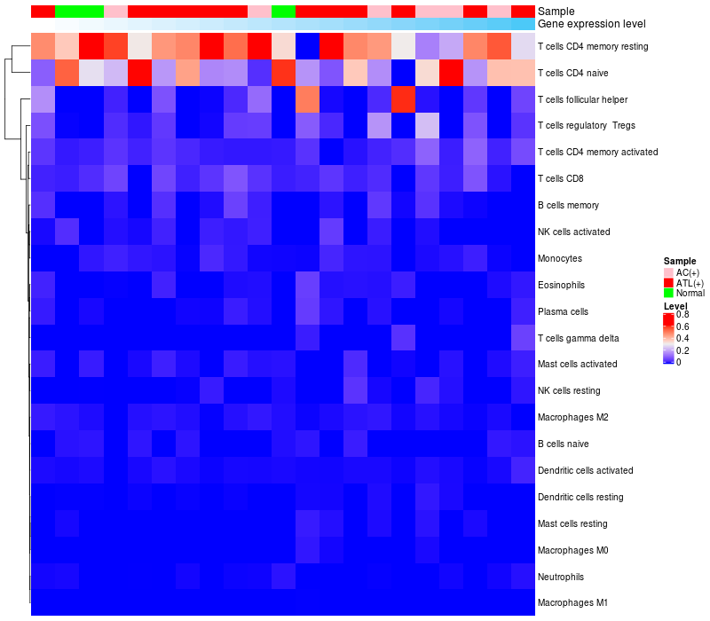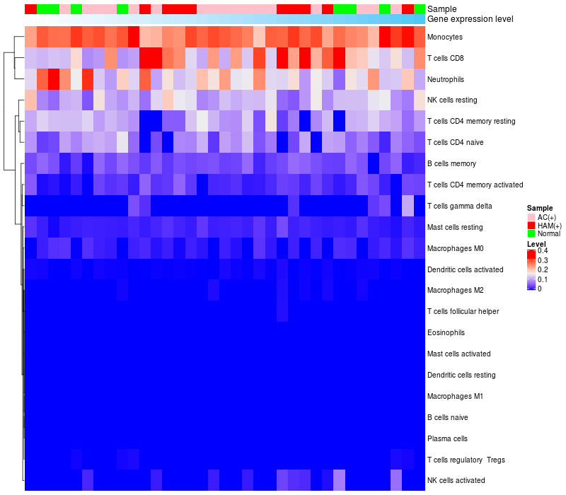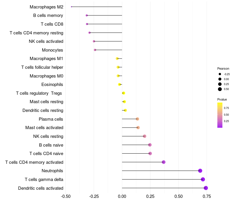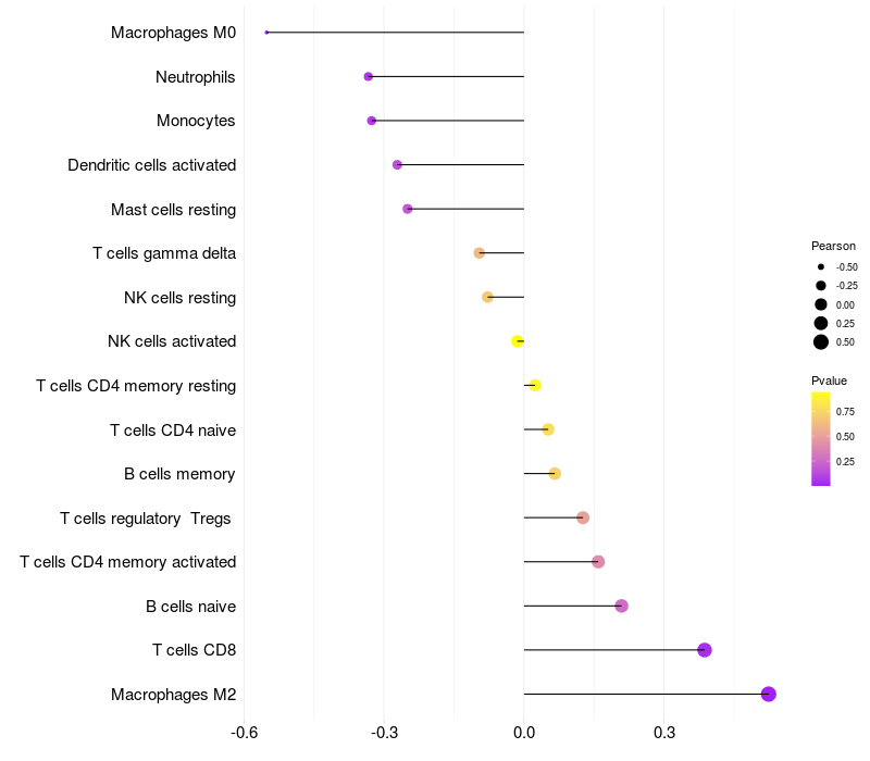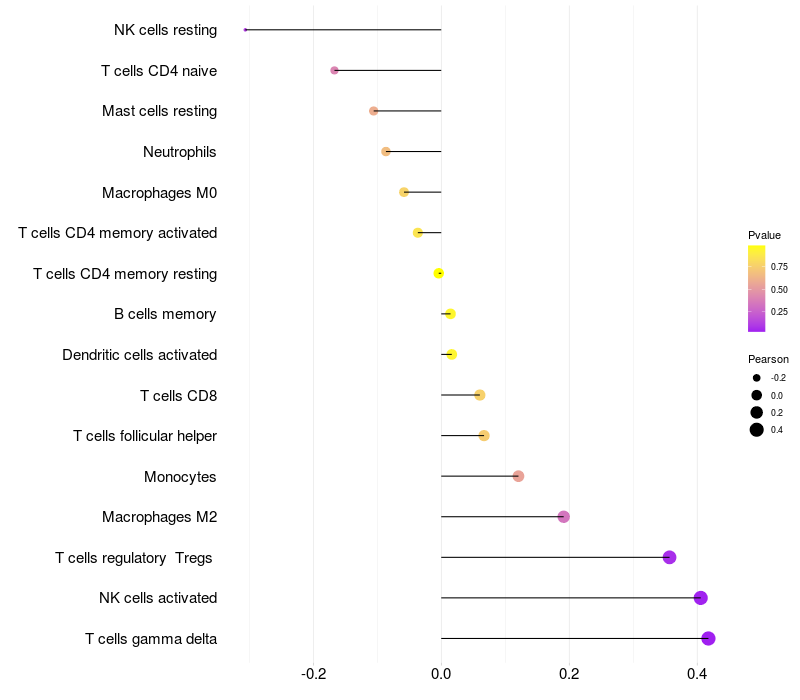 Lollipop of NDUFS4 expression and immune infiltrating cell level correlation result in HTLV1+ samples