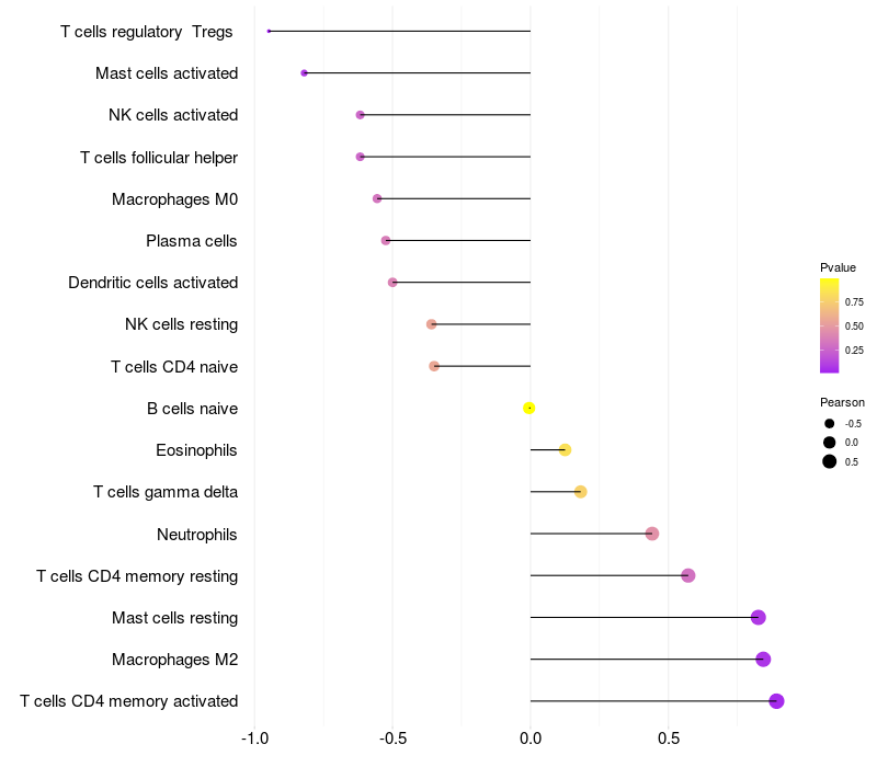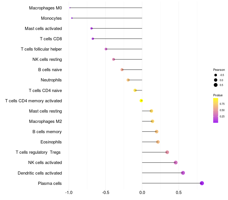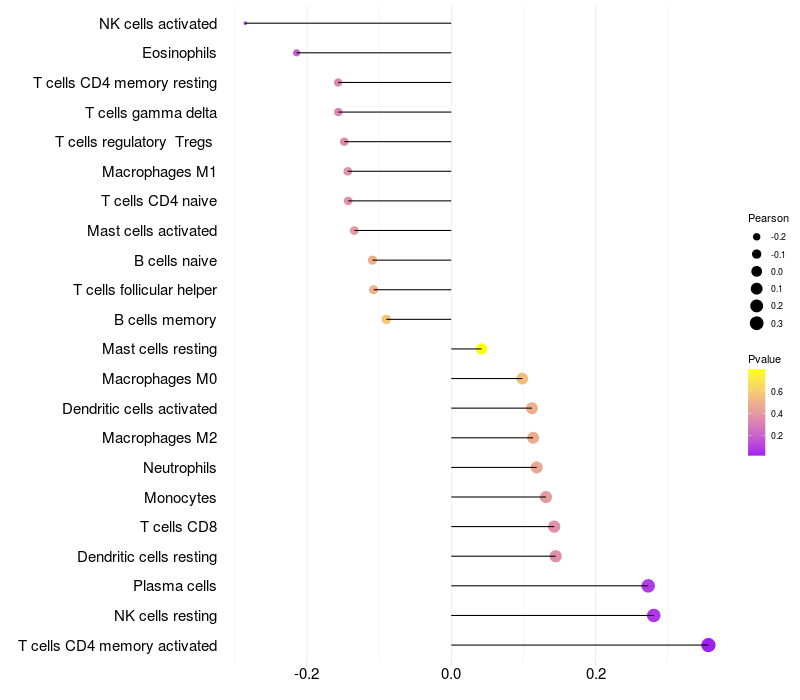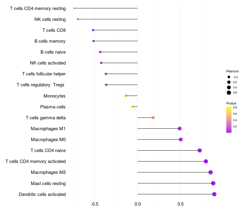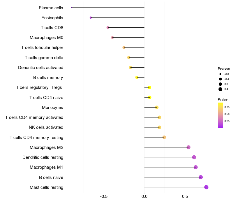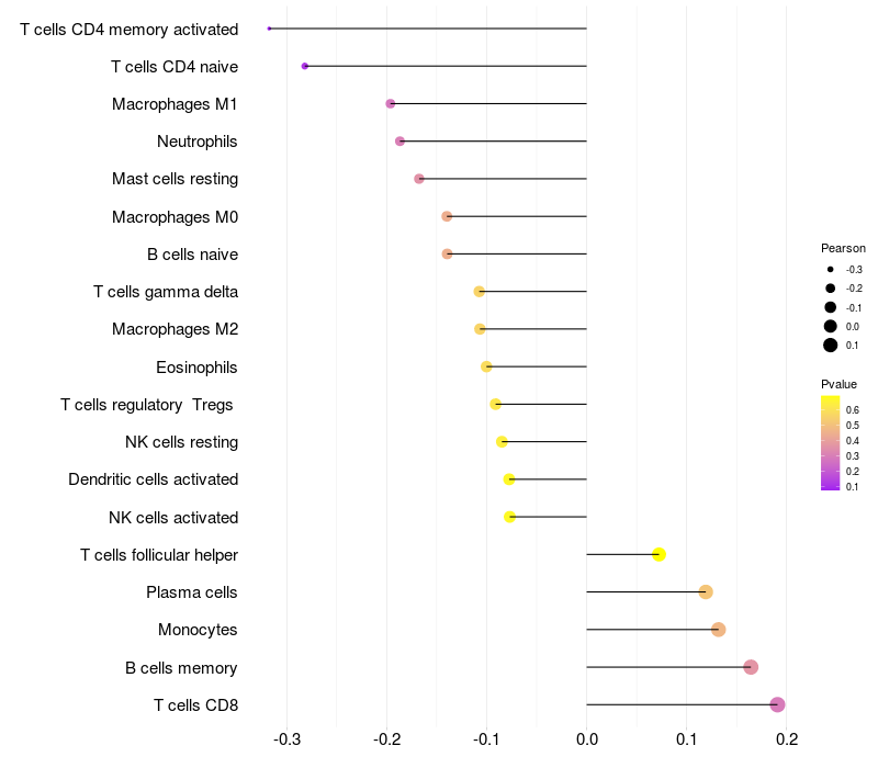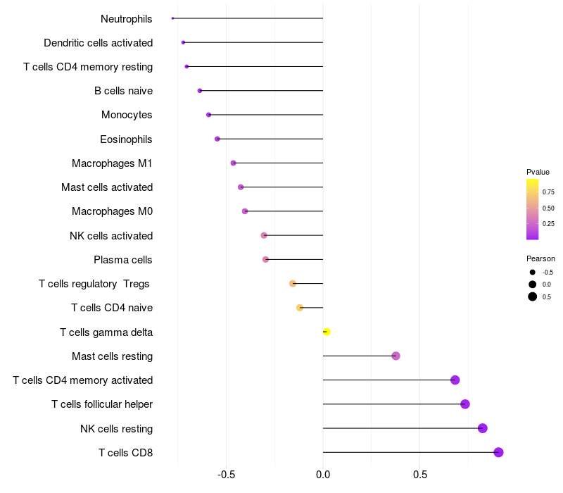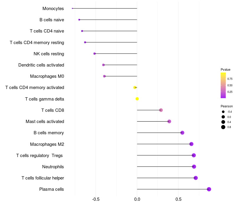 Lollipop of NDUFS6 expression and immune infiltrating cell level correlation result in EBV+ samples