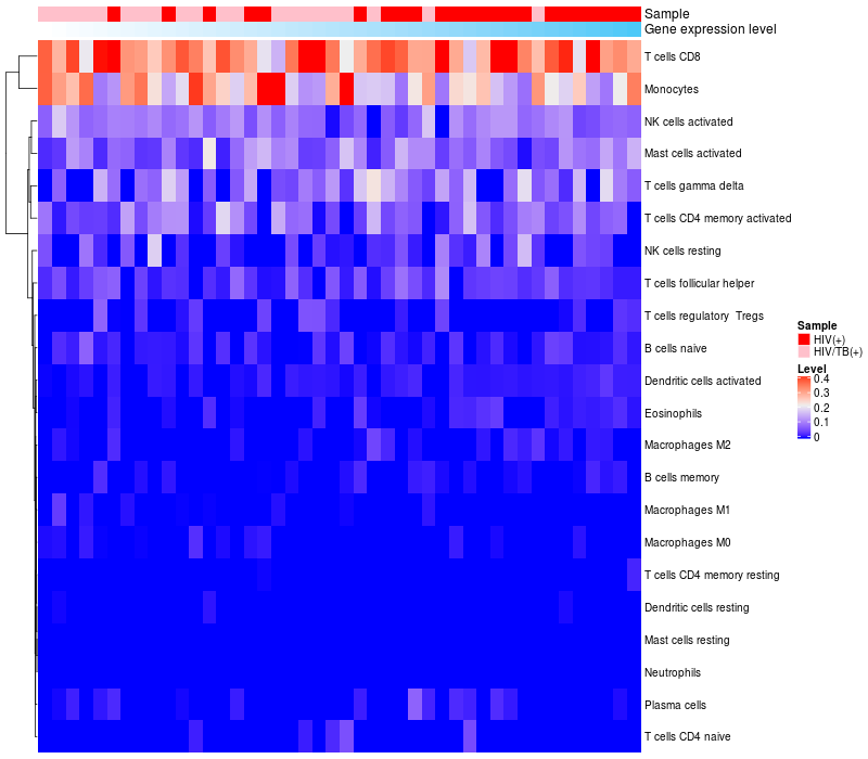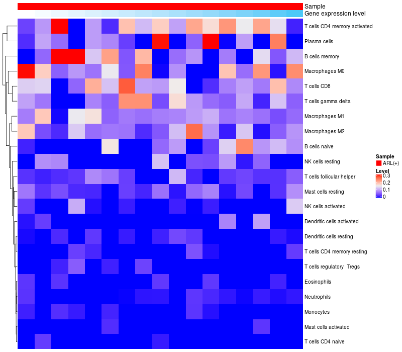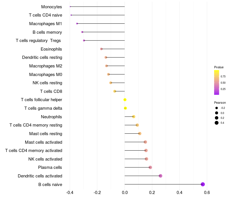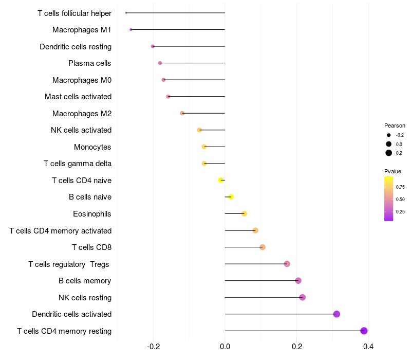 Relationship between gene expression and immune infiltrating cell level