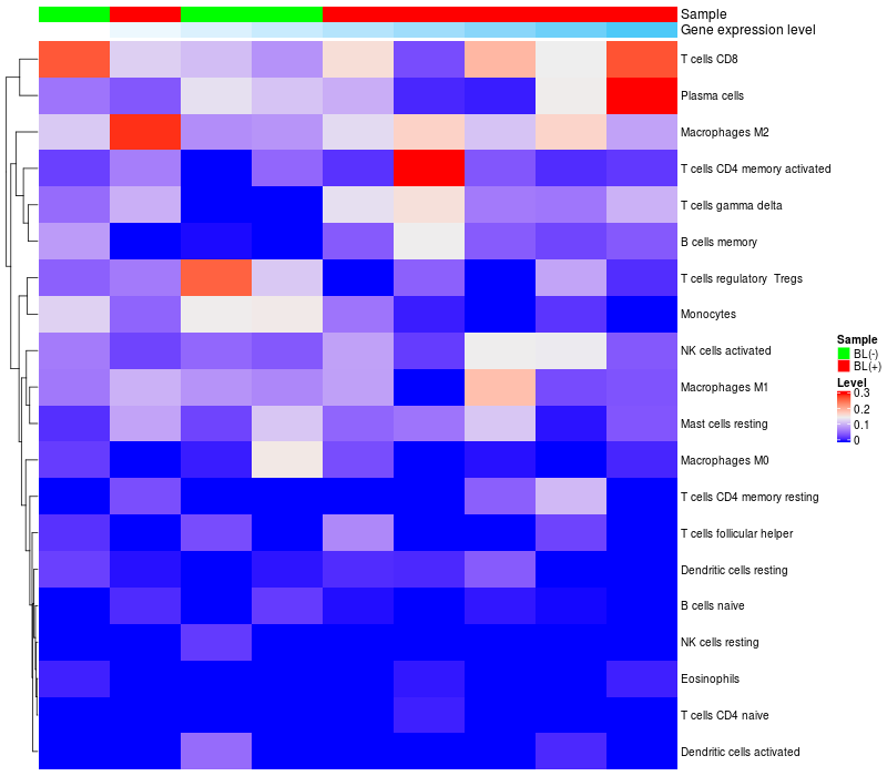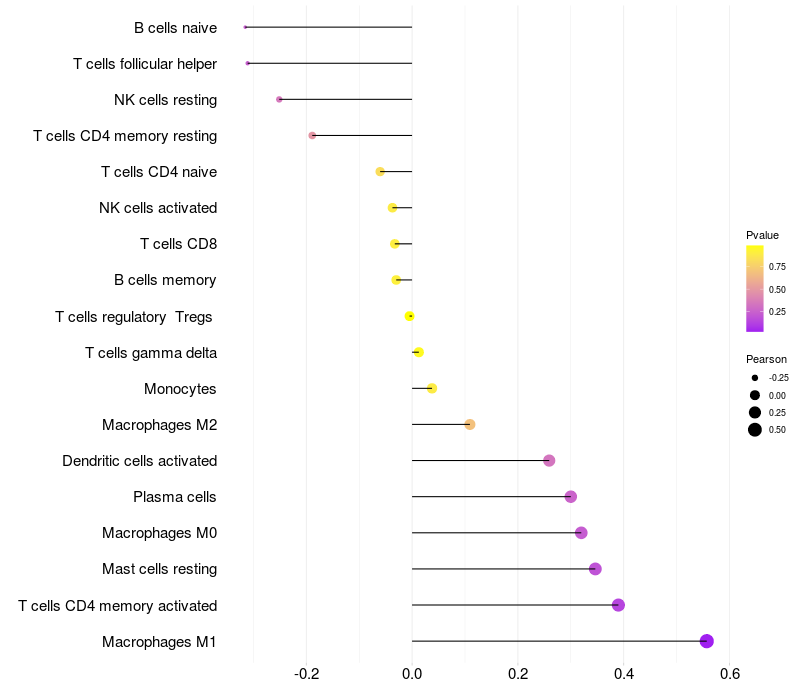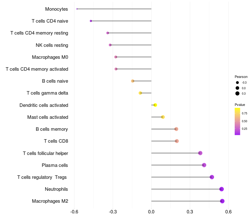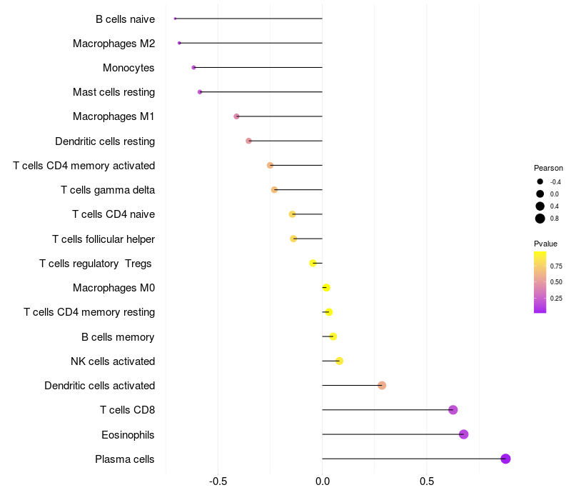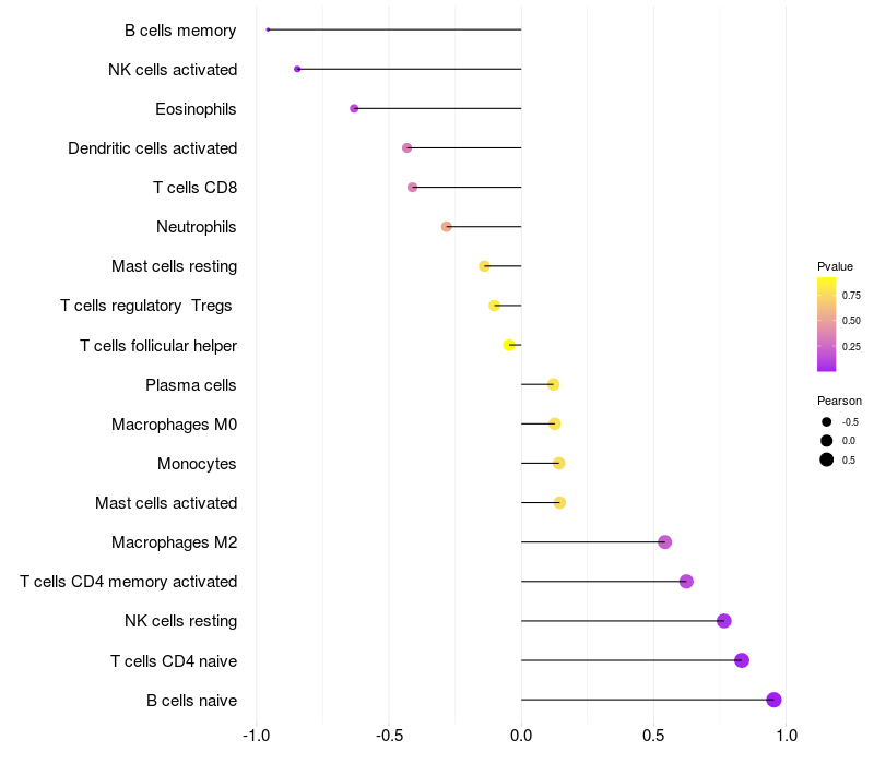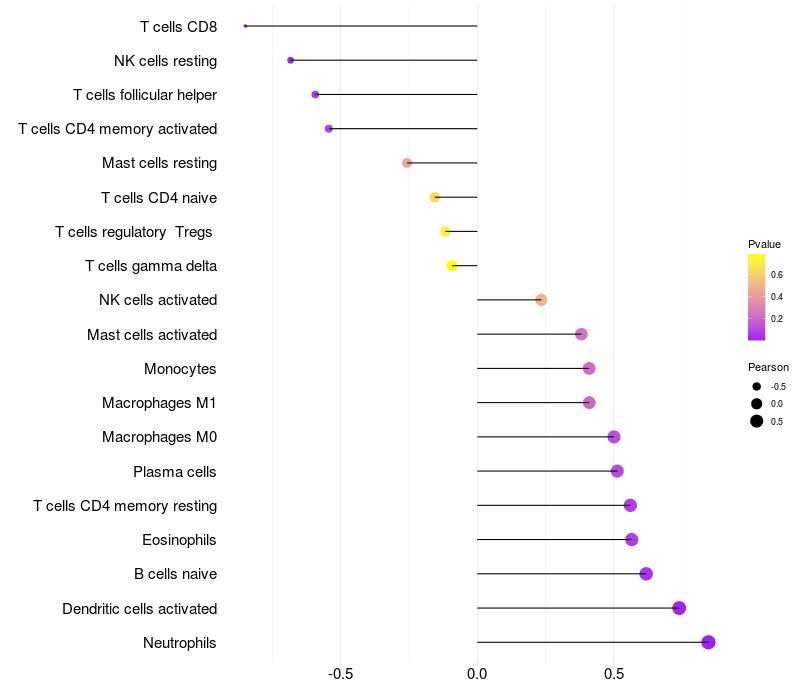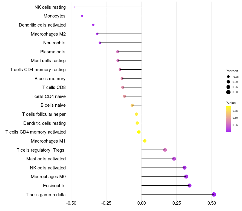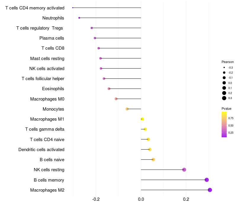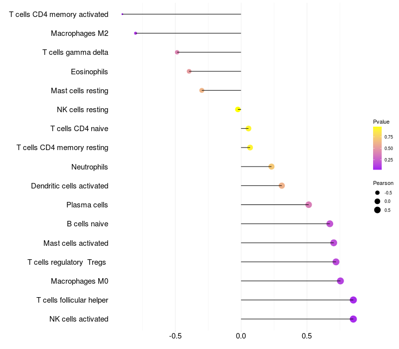 Lollipop of NEDD9 expression and immune infiltrating cell level correlation result in EBV+ samples