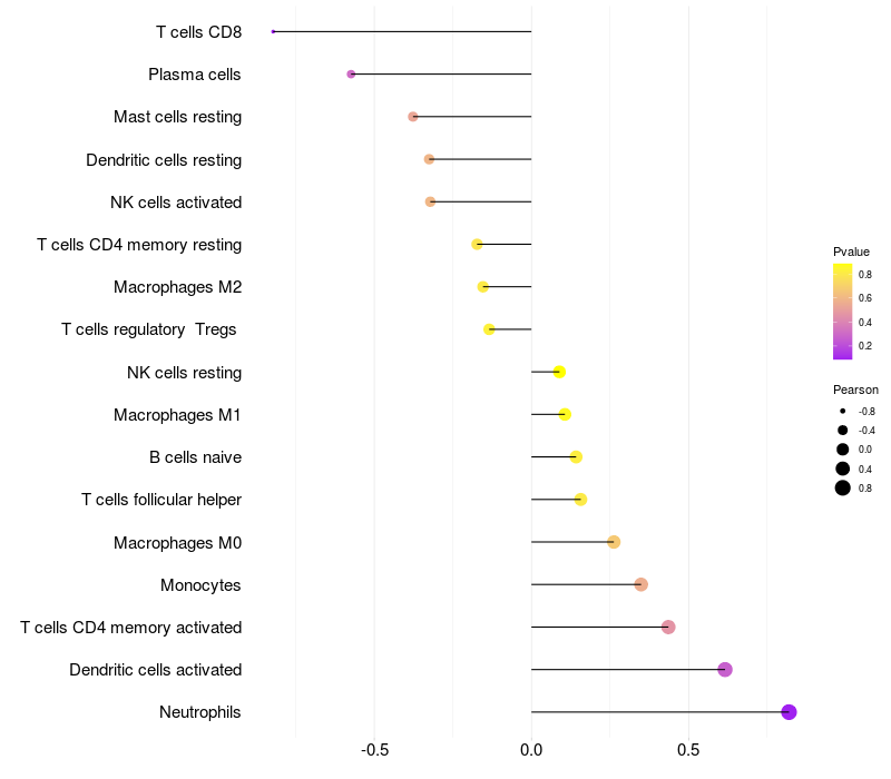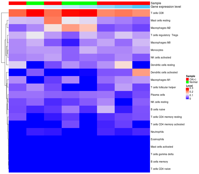 Relationship between gene expression and immune infiltrating cell level