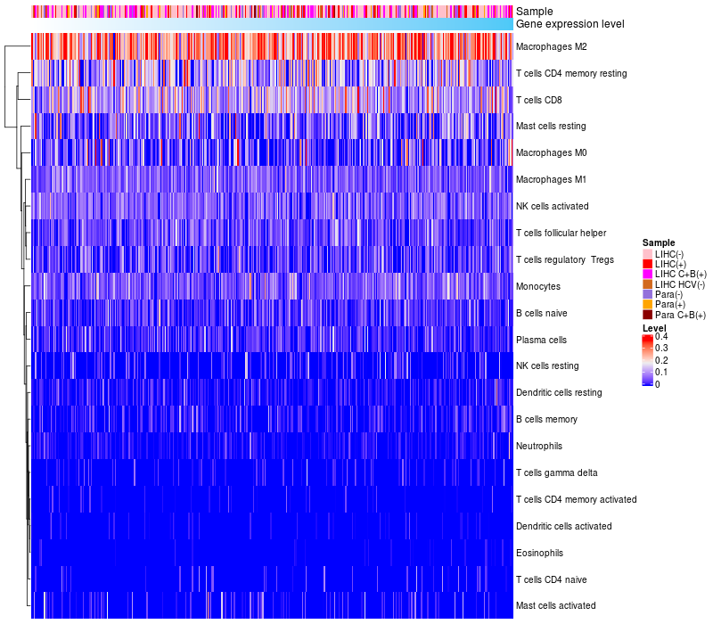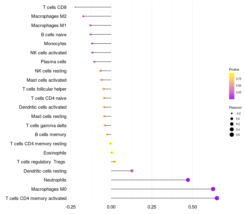 Relationship between gene expression and immune infiltrating cell level