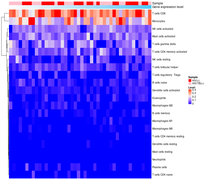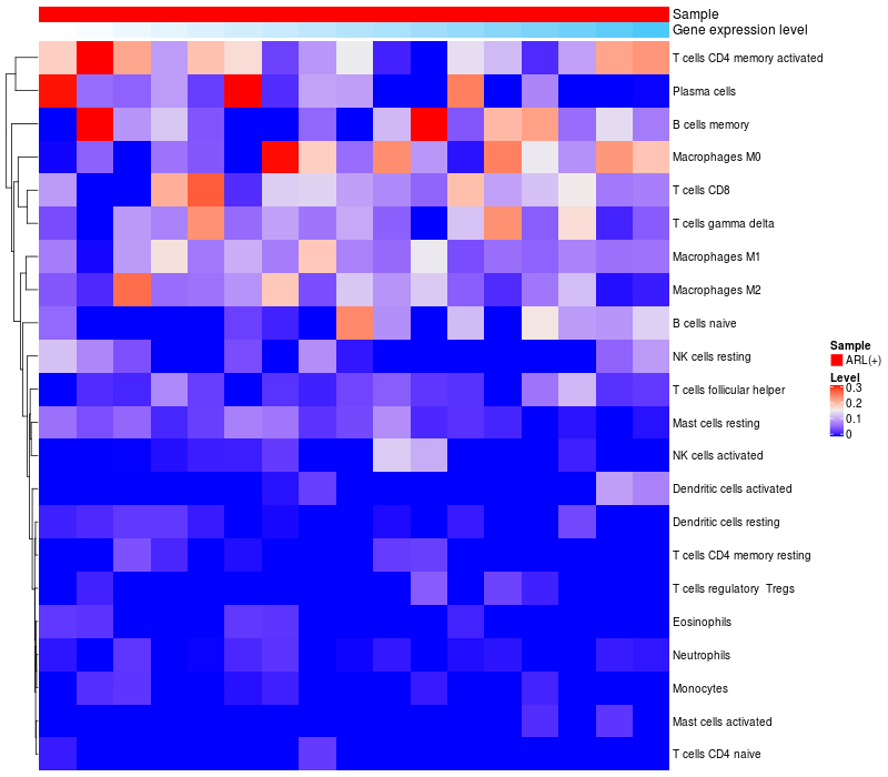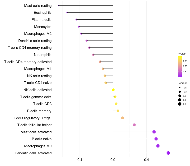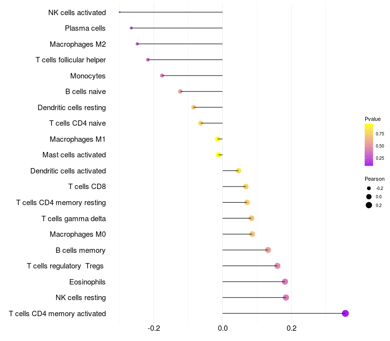 Relationship between gene expression and immune infiltrating cell level