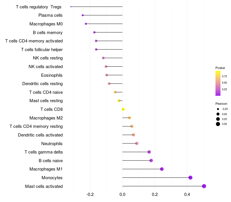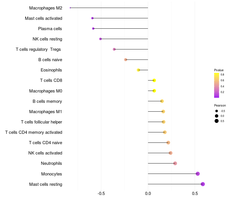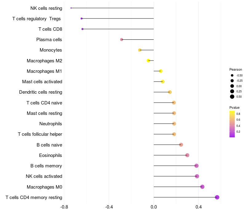Lollipop of NFE2L2 expression and immune infiltrating cell level correlation result in HBV+ Liver cirrhosis samples