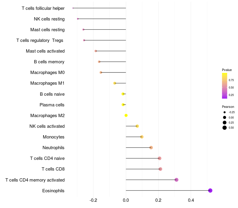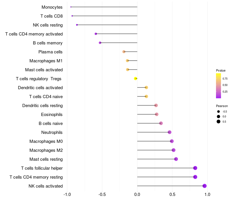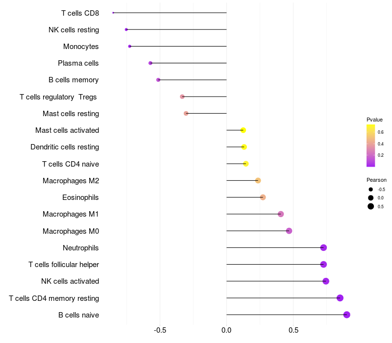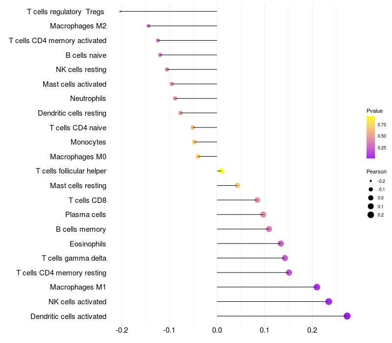 Lollipop of NFIB expression and immune infiltrating cell level correlation result in HBV+ Liver cirrhosis samples