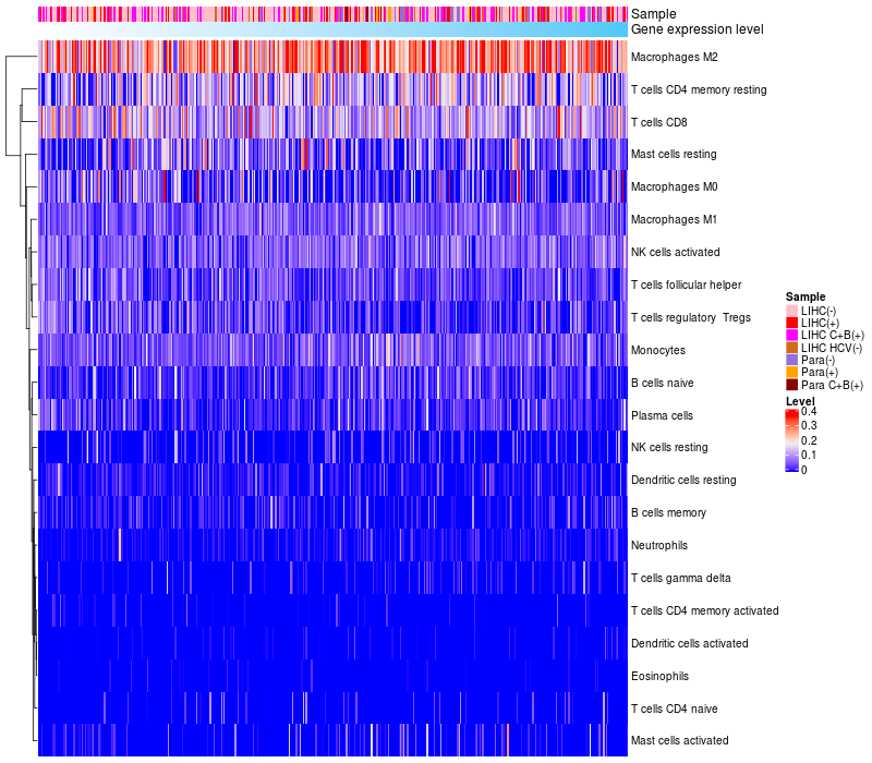 Relationship between gene expression and immune infiltrating cell level