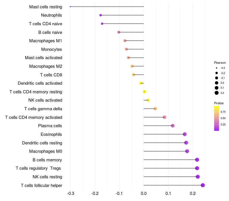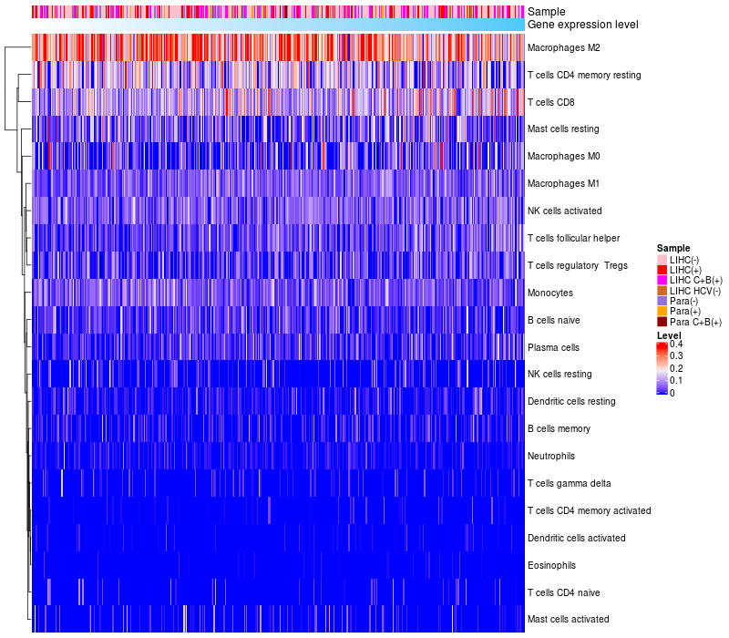 Relationship between gene expression and immune infiltrating cell level
