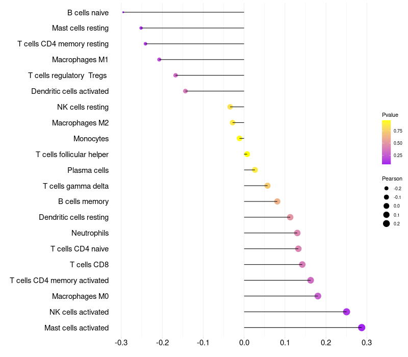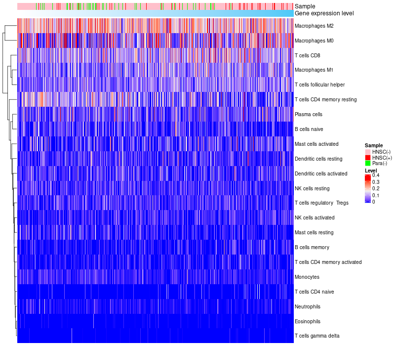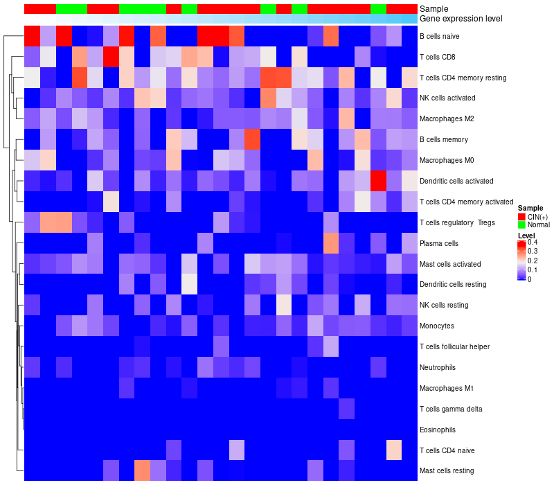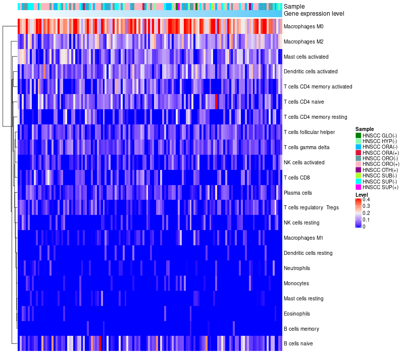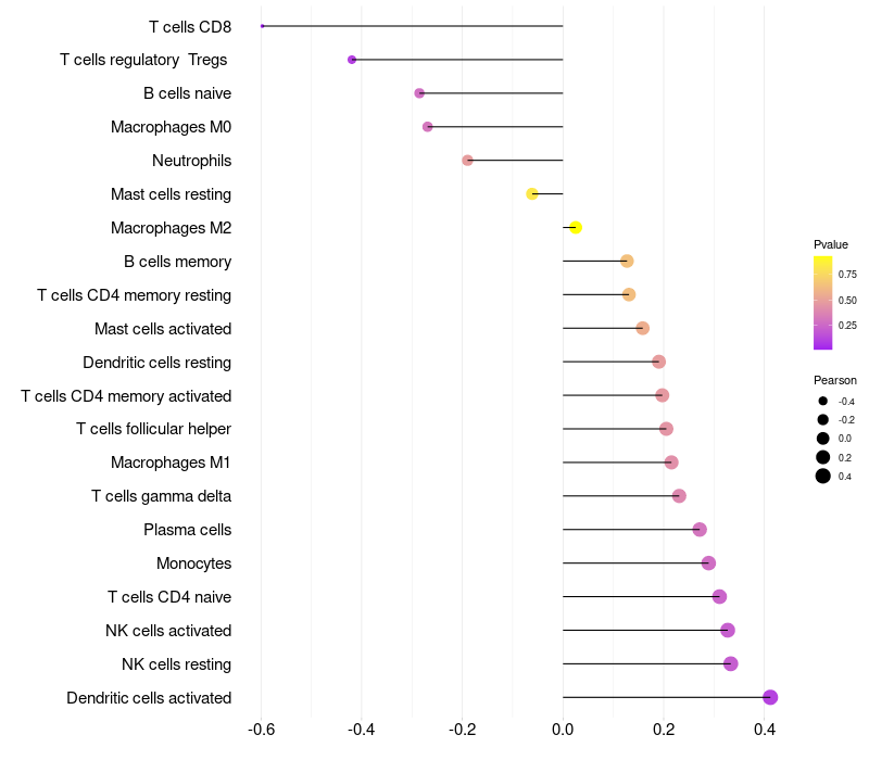 Relationship between gene expression and immune infiltrating cell level