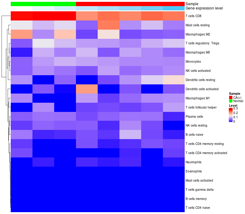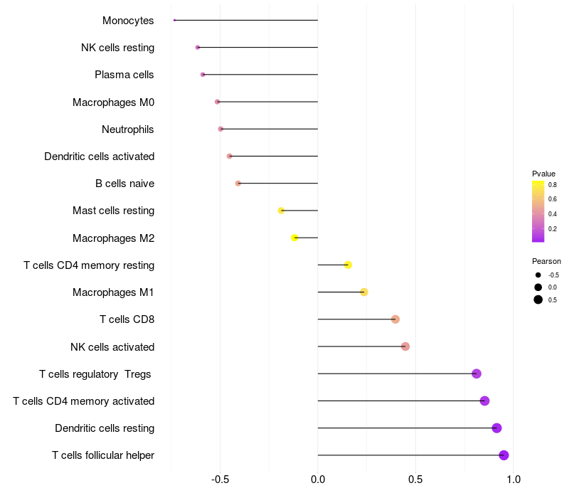 Relationship between gene expression and immune infiltrating cell level