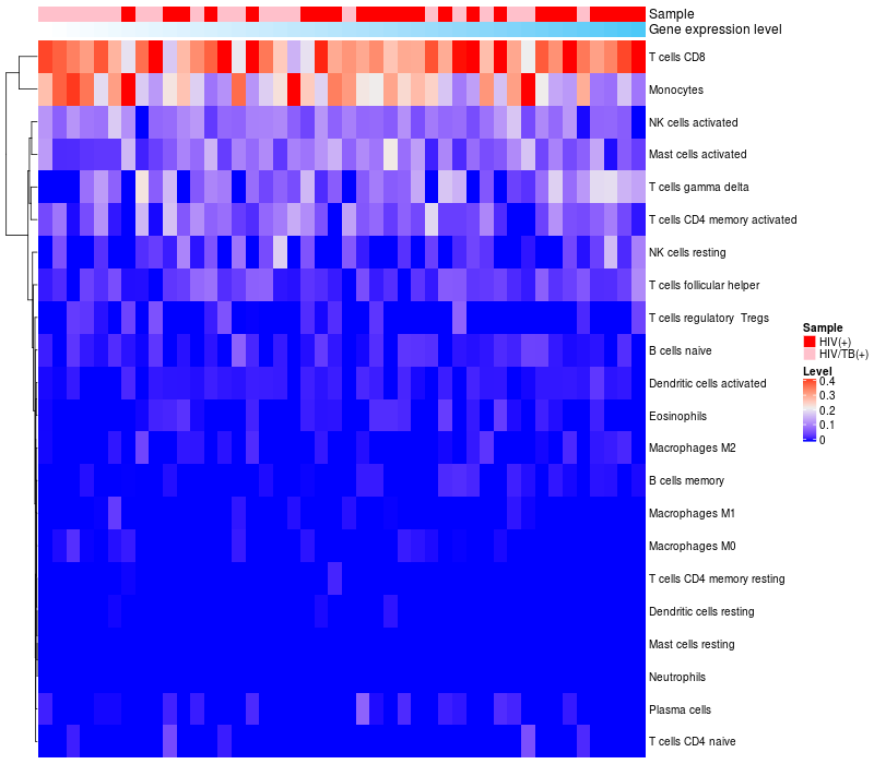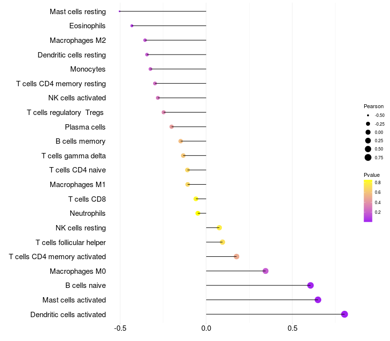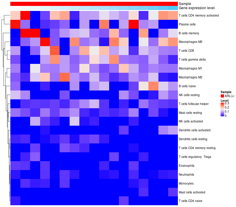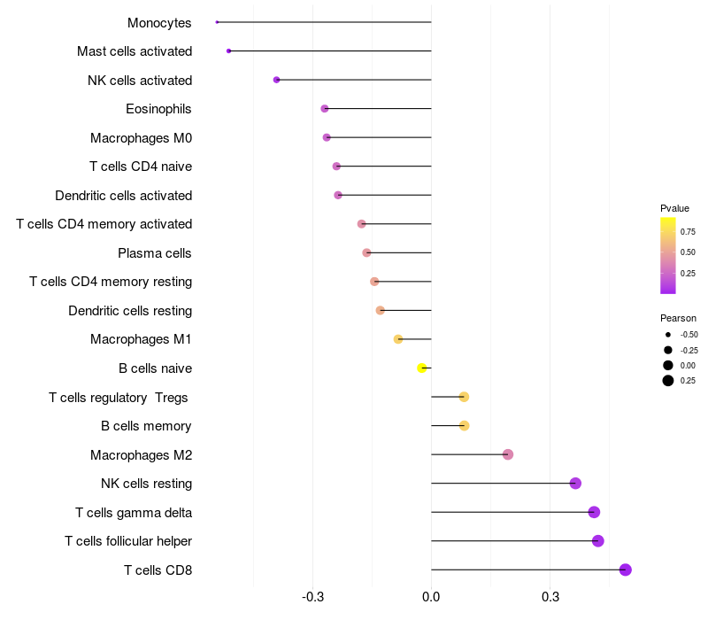 Relationship between gene expression and immune infiltrating cell level