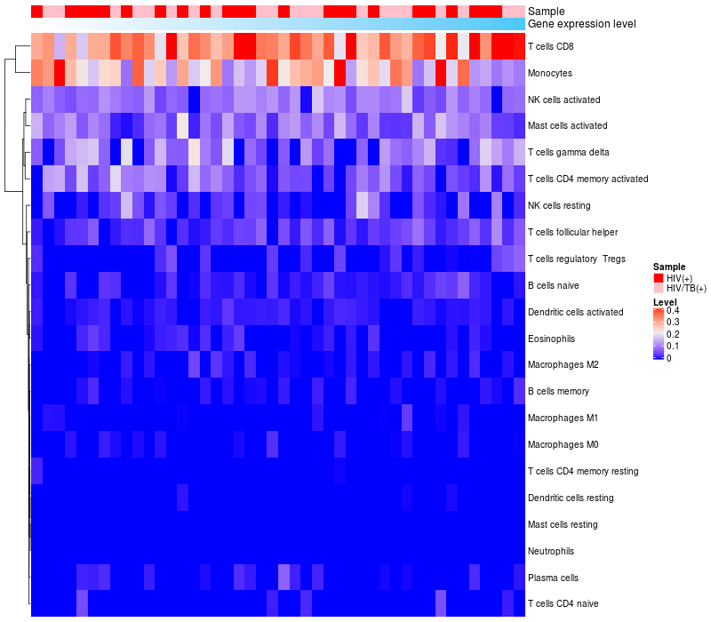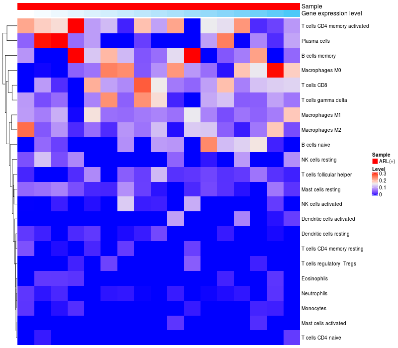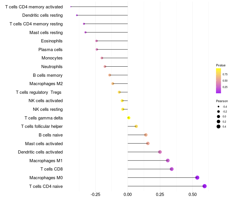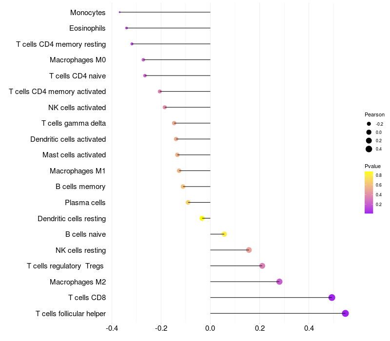 Relationship between gene expression and immune infiltrating cell level