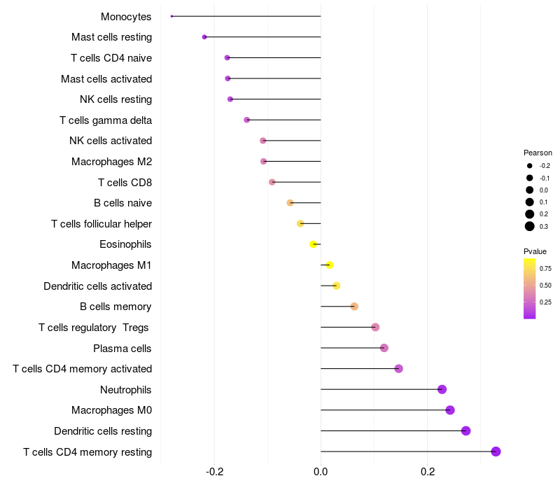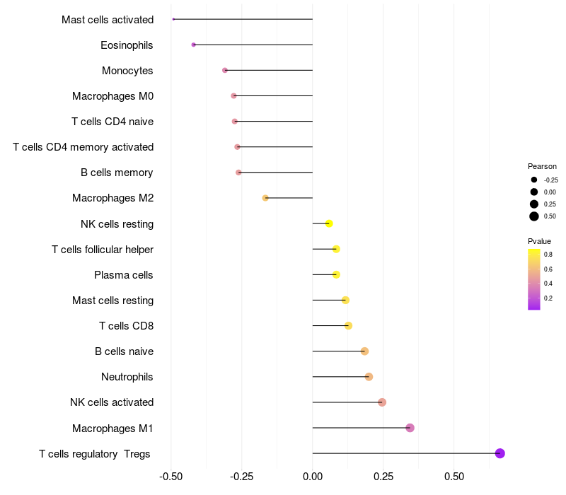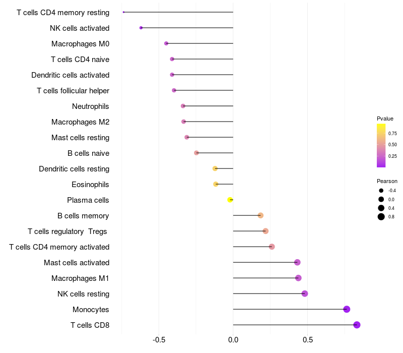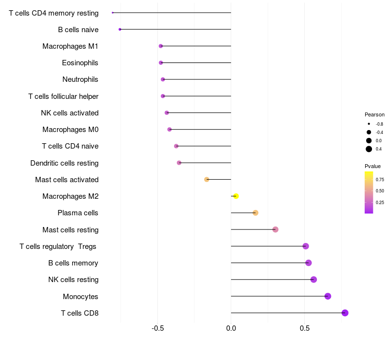 Lollipop of NKTR expression and immune infiltrating cell level correlation result in HBV+ Liver cirrhosis samples