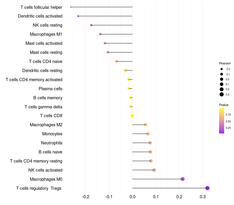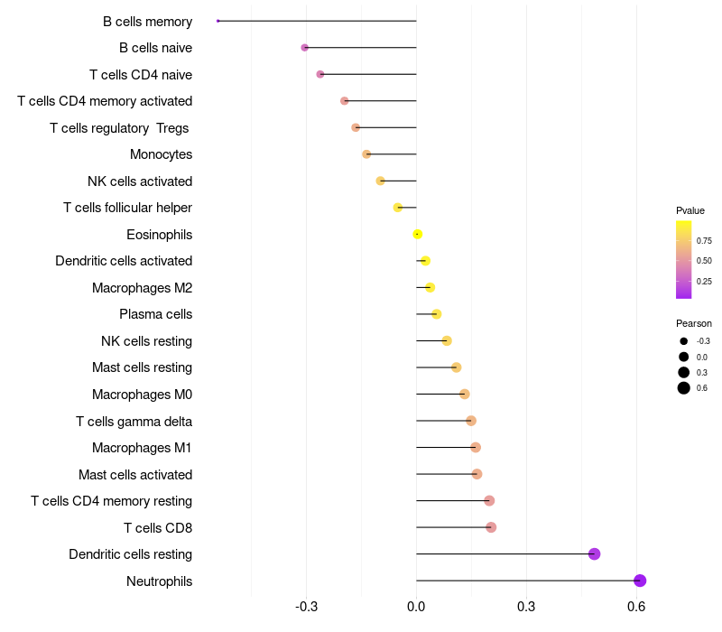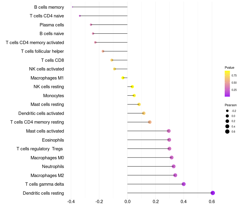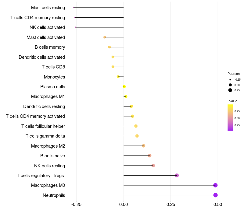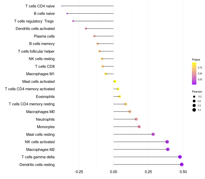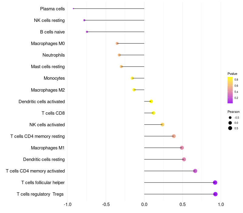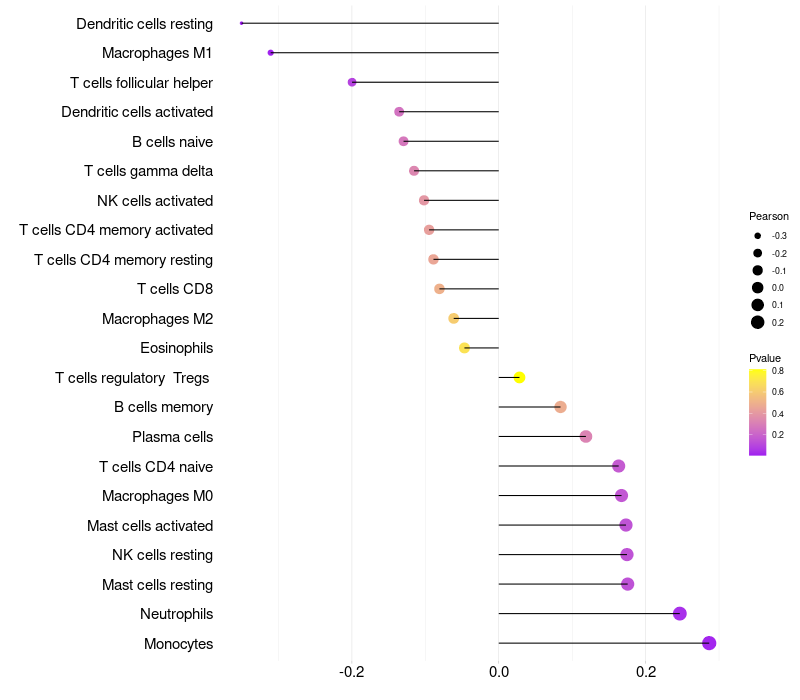 Lollipop of NLRP12 expression and immune infiltrating cell level correlation result in HPV+ samples