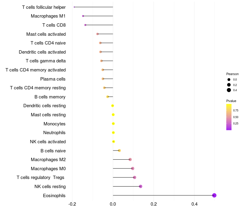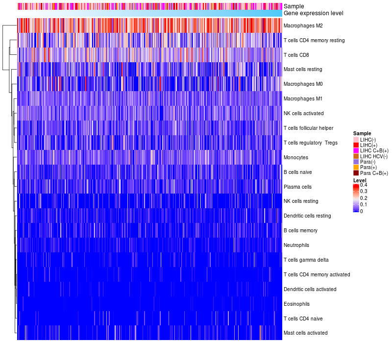 Relationship between gene expression and immune infiltrating cell level